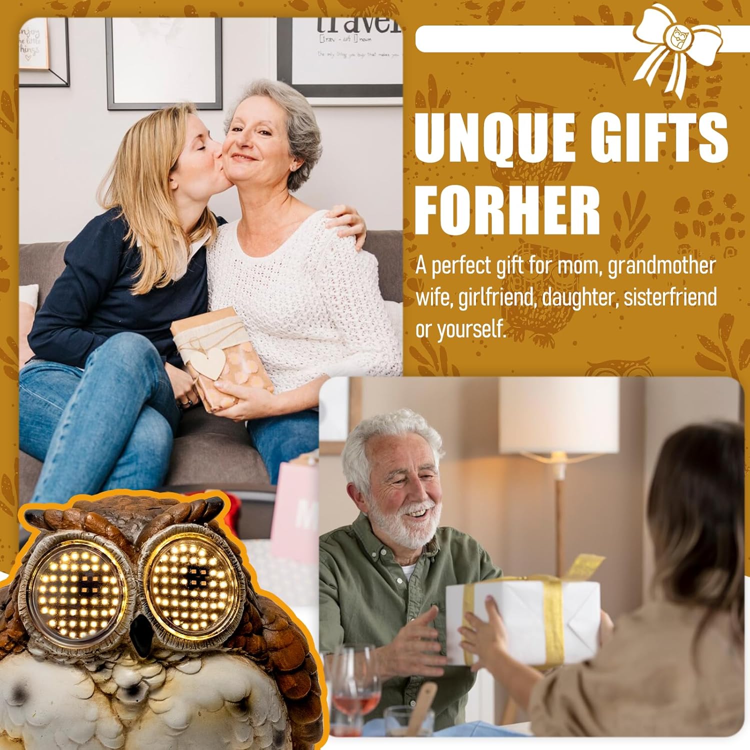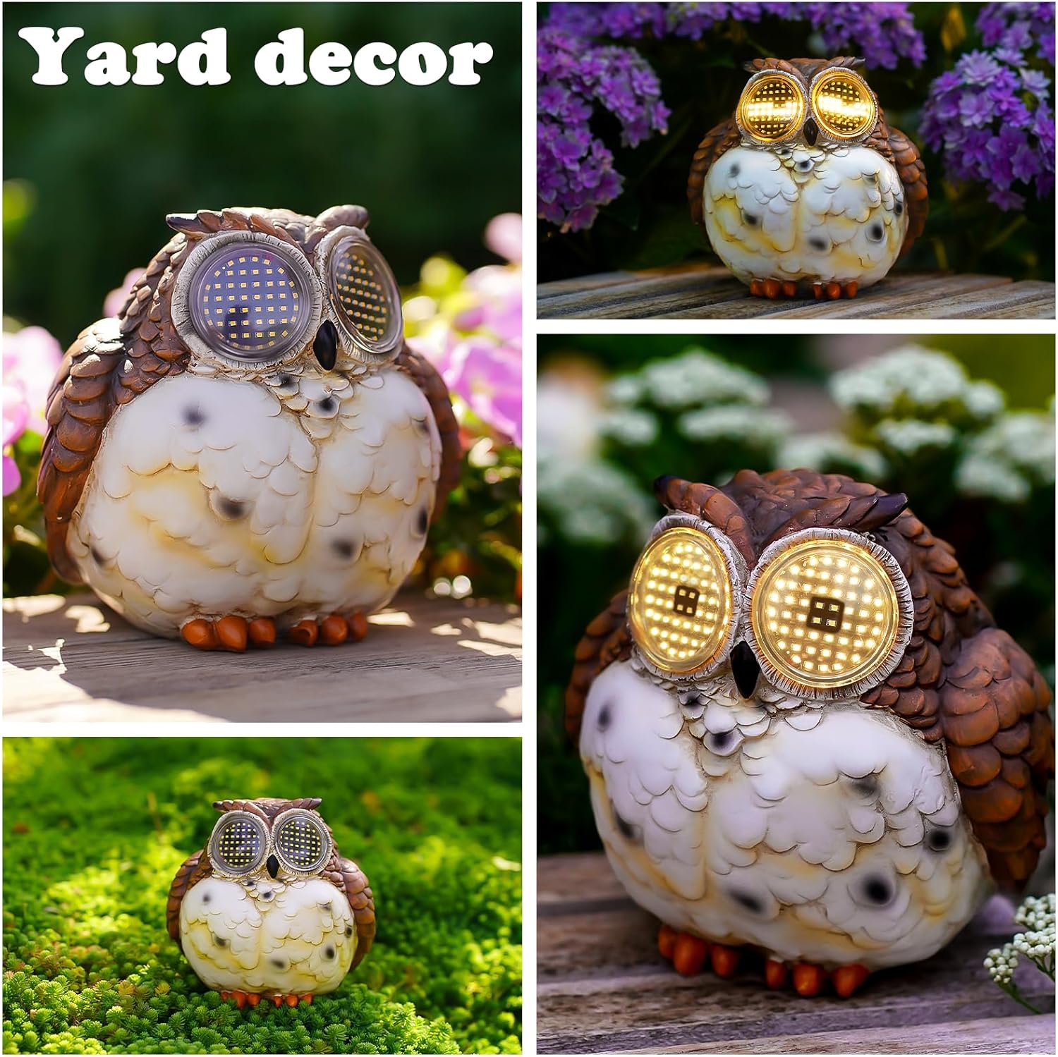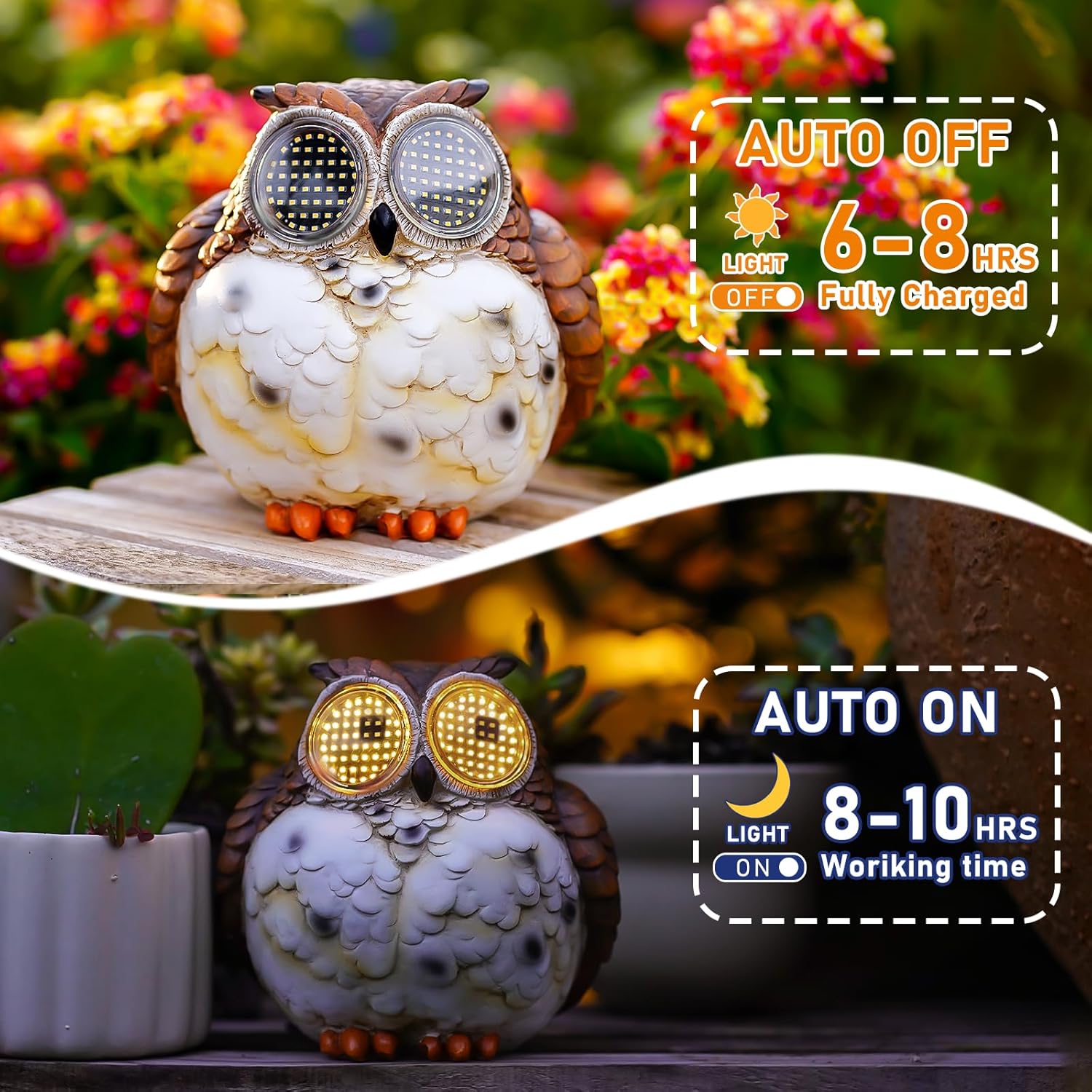 Solar Garden Owl Statue with Moving LED Eyes, Owls Figurine Outdoor Decorations Sculpture for Patio, Yard, Lawn, Porch, Home Ornament, Christmas Housewarming Gifts for Women Mom
