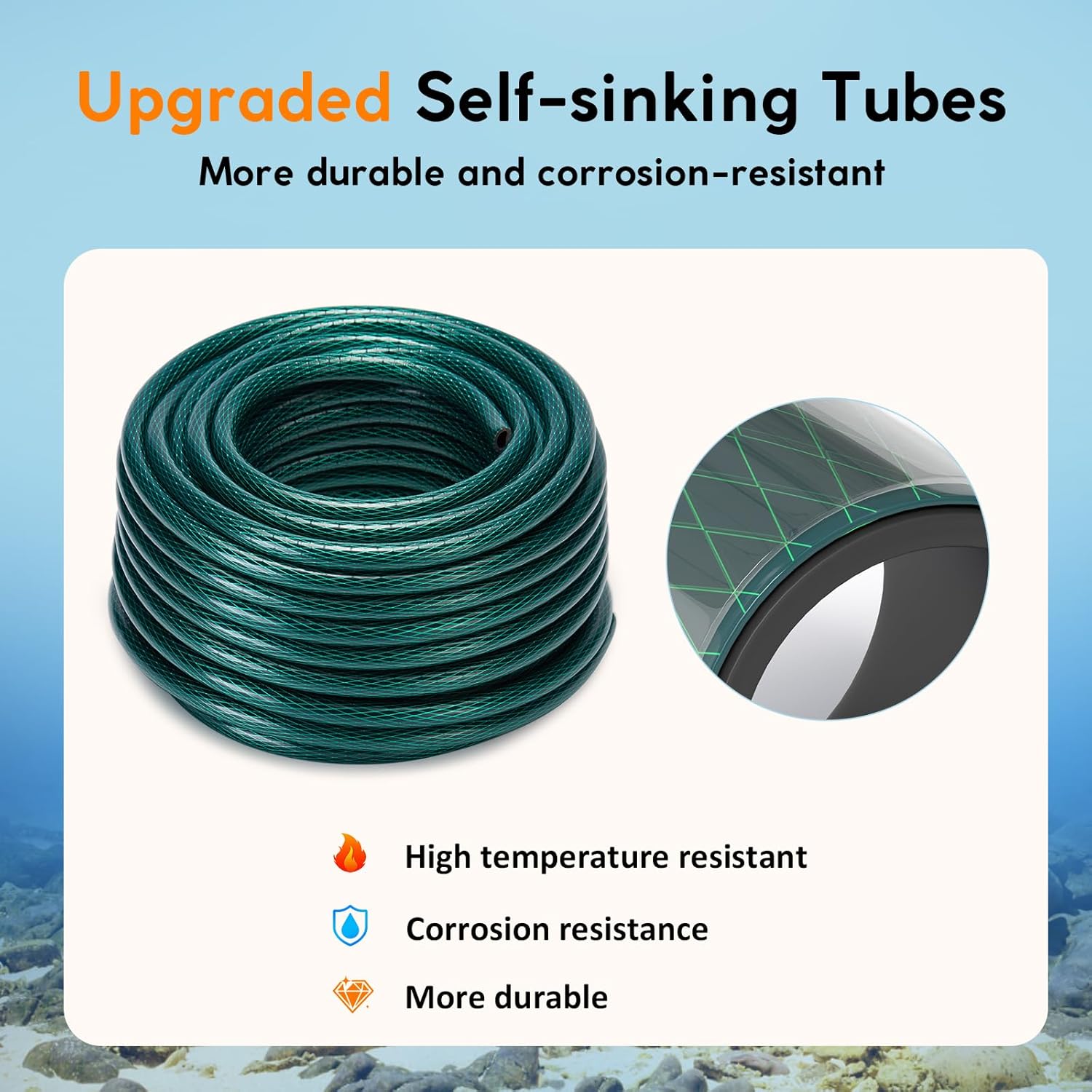 • Reinforced Submersion Tubing: Heavy-duty self-sinking tubing paired with stainless steel braided hoses withstands high pressure and temperature fluctuations, ensuring reliable operation year-round. (Installation guide included).