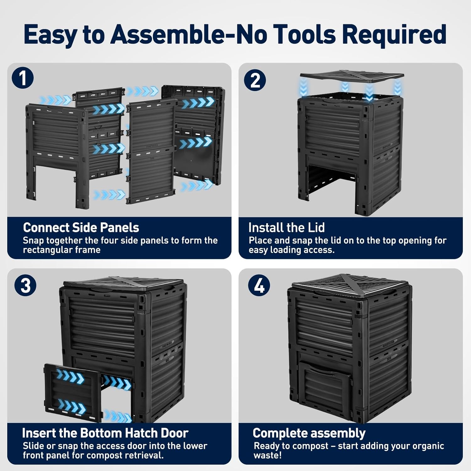 • Easy to Assemble – Designed with simplicity in mind, this compost bin comes with clear instructions and can be quickly set up without the need for tools.