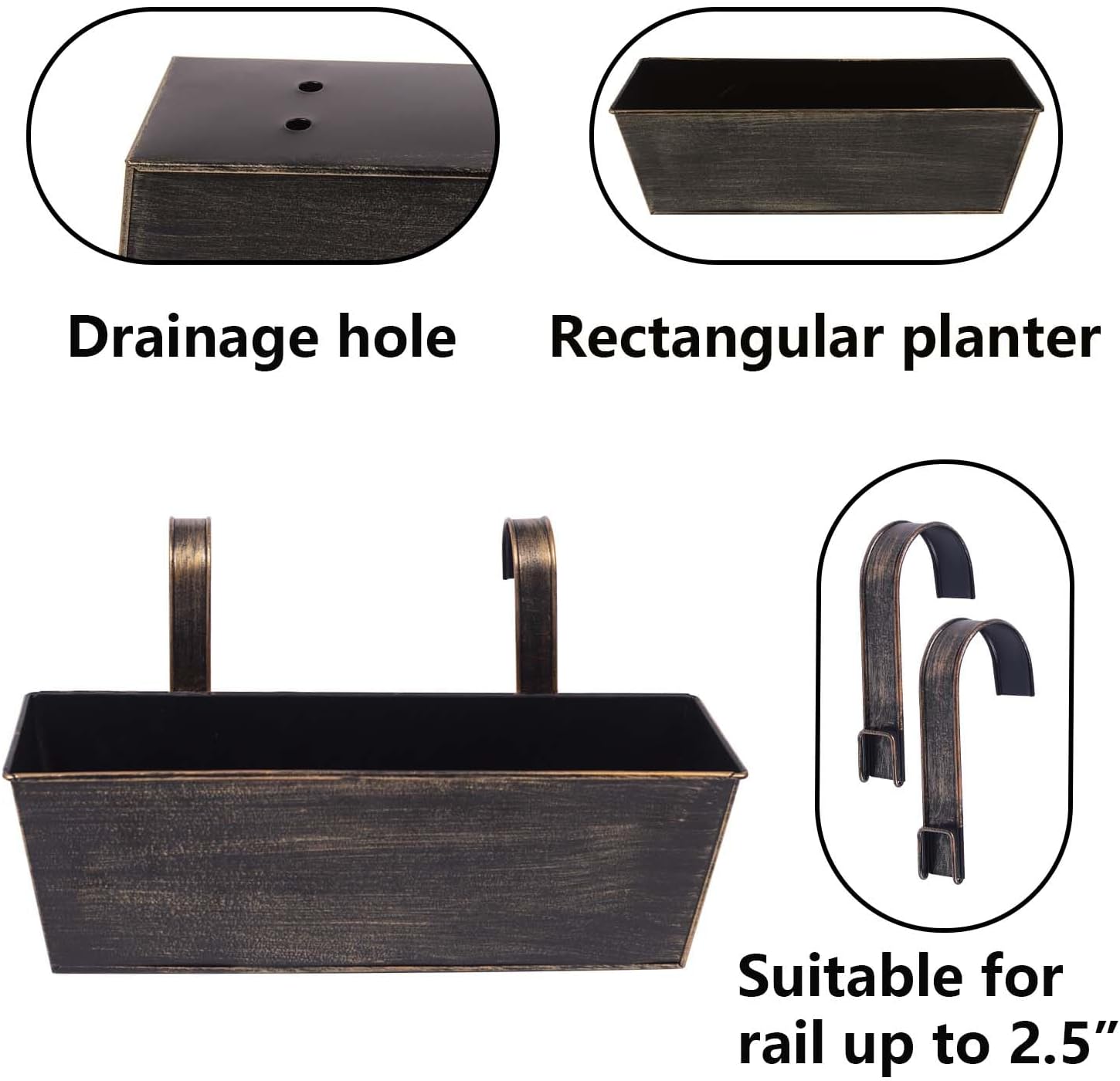• Tool-Free Adjustable Installation:Our balcony planters railing hanging come with detachable hooks that fit railings less than 2.5 inches wide and can be installed effortlessly, making them the ideal window box brackets or over the fence planters