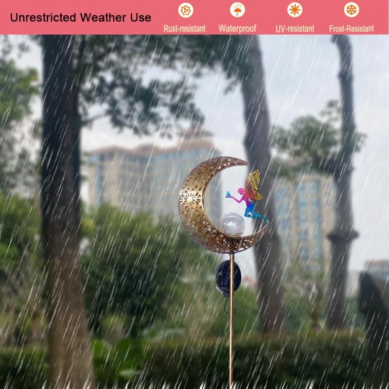 • 【Outdoor Decorations Gift Ideas】These decorative stakes design with fairy, moon and butterfly, showcase warm white LED lights that create a beautiful reflection of patterns when illuminated. They add an enchanting landscape lighting to your home outside, lawn, patio, garden, backyard, or pathway, enhancing the visual appeal of your outside space.