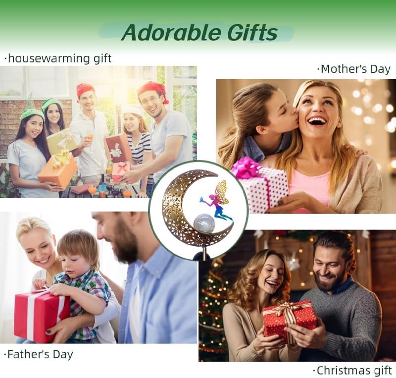 • 【A Great Garden Gift】The solar fairy moon lights comes in his own beautifully designedbox.Aperfectchoiceasagiftfor Mom/Grandma/Wife/Daughter/Sister/Aunt/Grandma,girlfriend/boyfriend,wife's wedding anniversary, child's birthday,mother's birthday, or Mother's Day, Father's Day,Thanksgiving Day,Valentine's Day and Christmas.