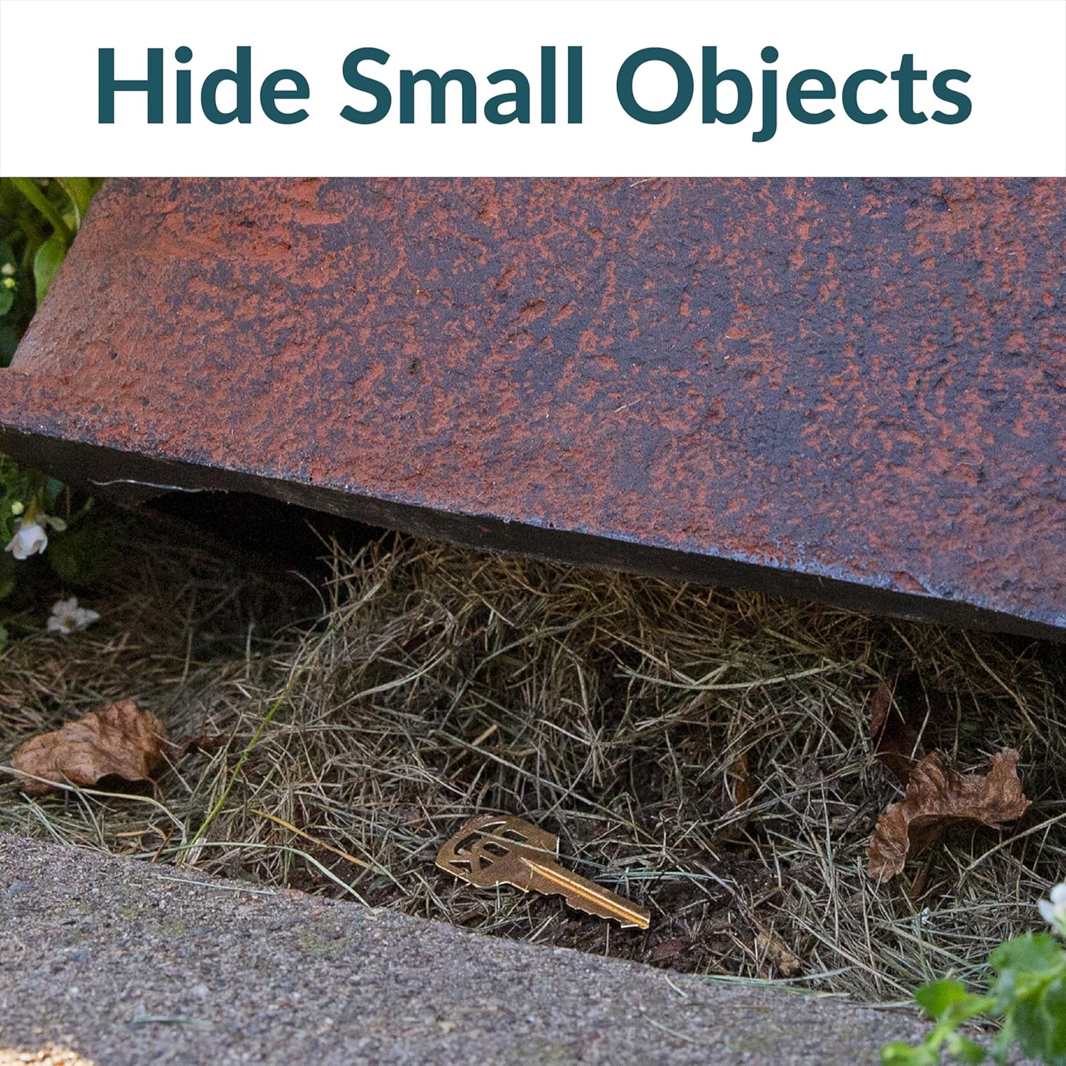 • SECURE AND WEATHER RESISTANT: Designed to stay put in any condition, this hollow landscape rock includes metal stakes for easy anchoring. Once secured, it remains firmly in place, preventing wind or accidental bumps from shifting it.
