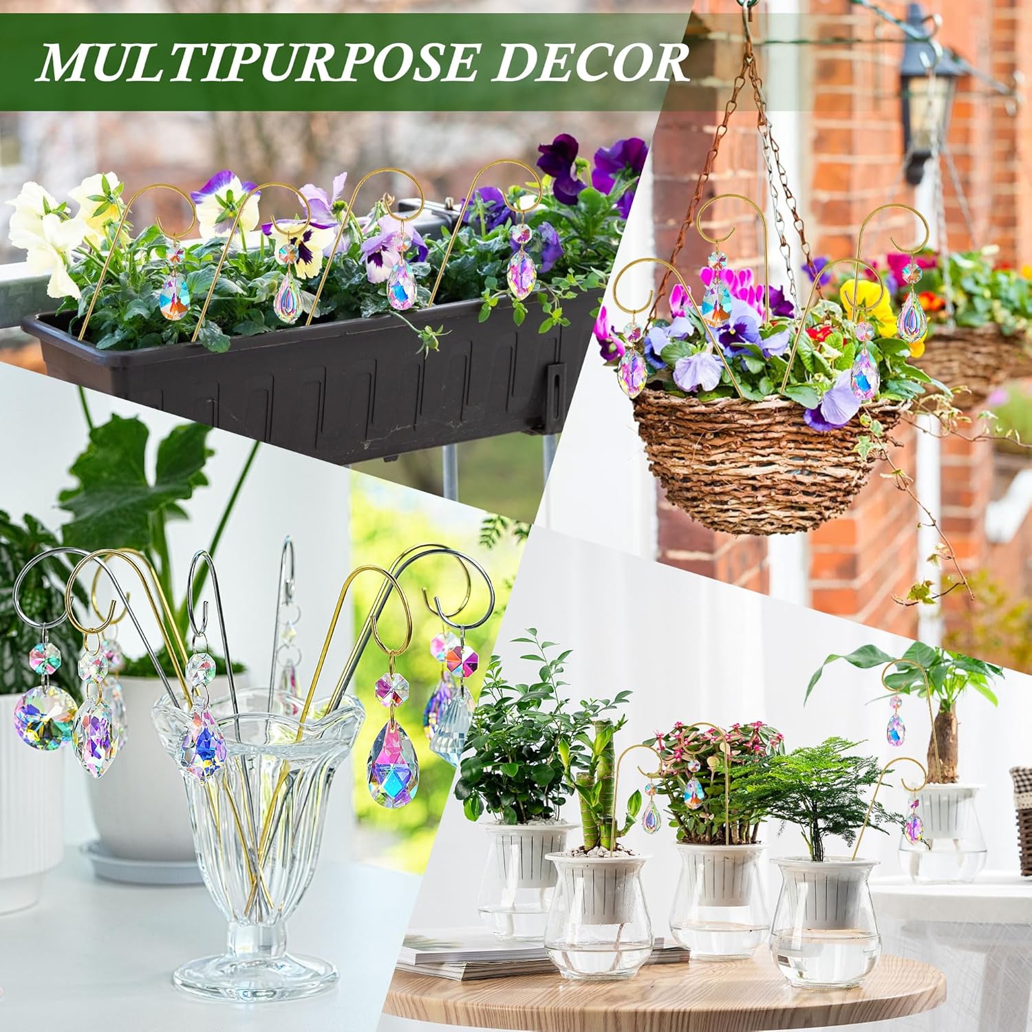 • Garden Plant Decorations - Just place stakes in soil and hang prisms, transforming sunlight into calming, ethereal rainbows in minutes