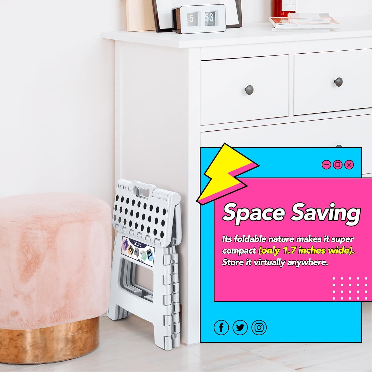 Delxo 9 Inch Folding Step Stool,White Step Stools for Kids Foldable,Portable Collapsible Step Stool with Handle, Folding Stool for Kitchen Bathroom,Bedroom,Garden