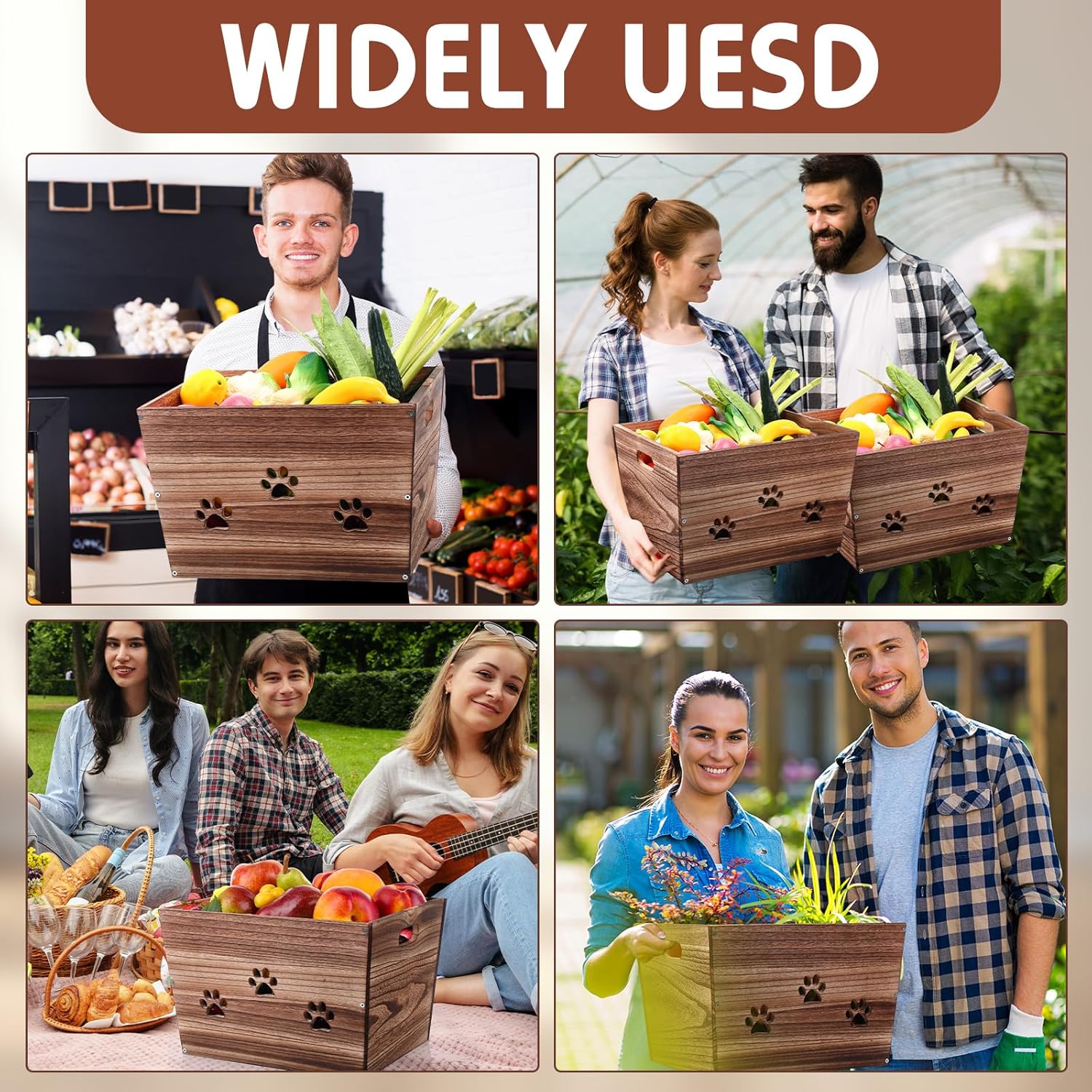3 Pack Rustic Wooden Crates Hollow Claw Wooden Storage Boxes with Handles Dog Toy Box Large Handmade Farmhouse Decorative Wood Crate for Display