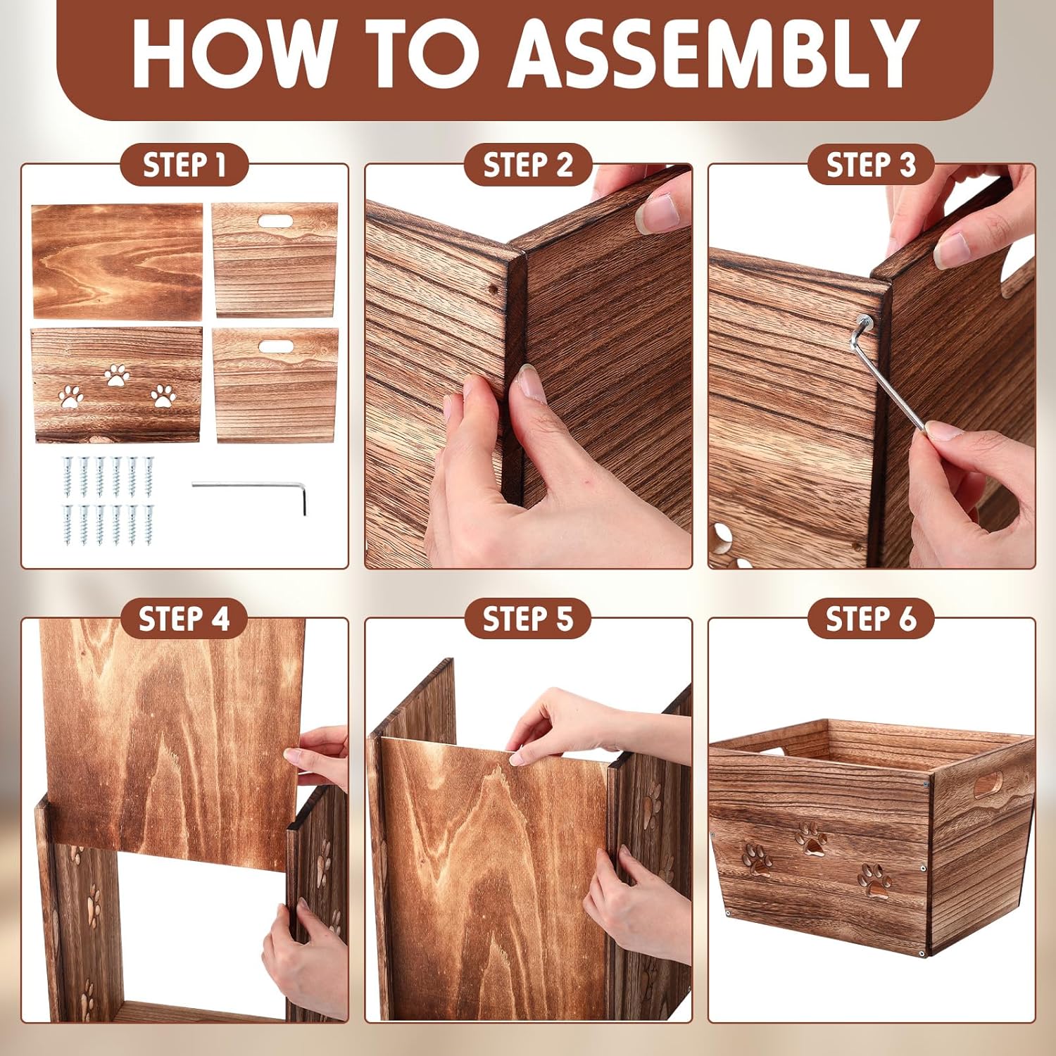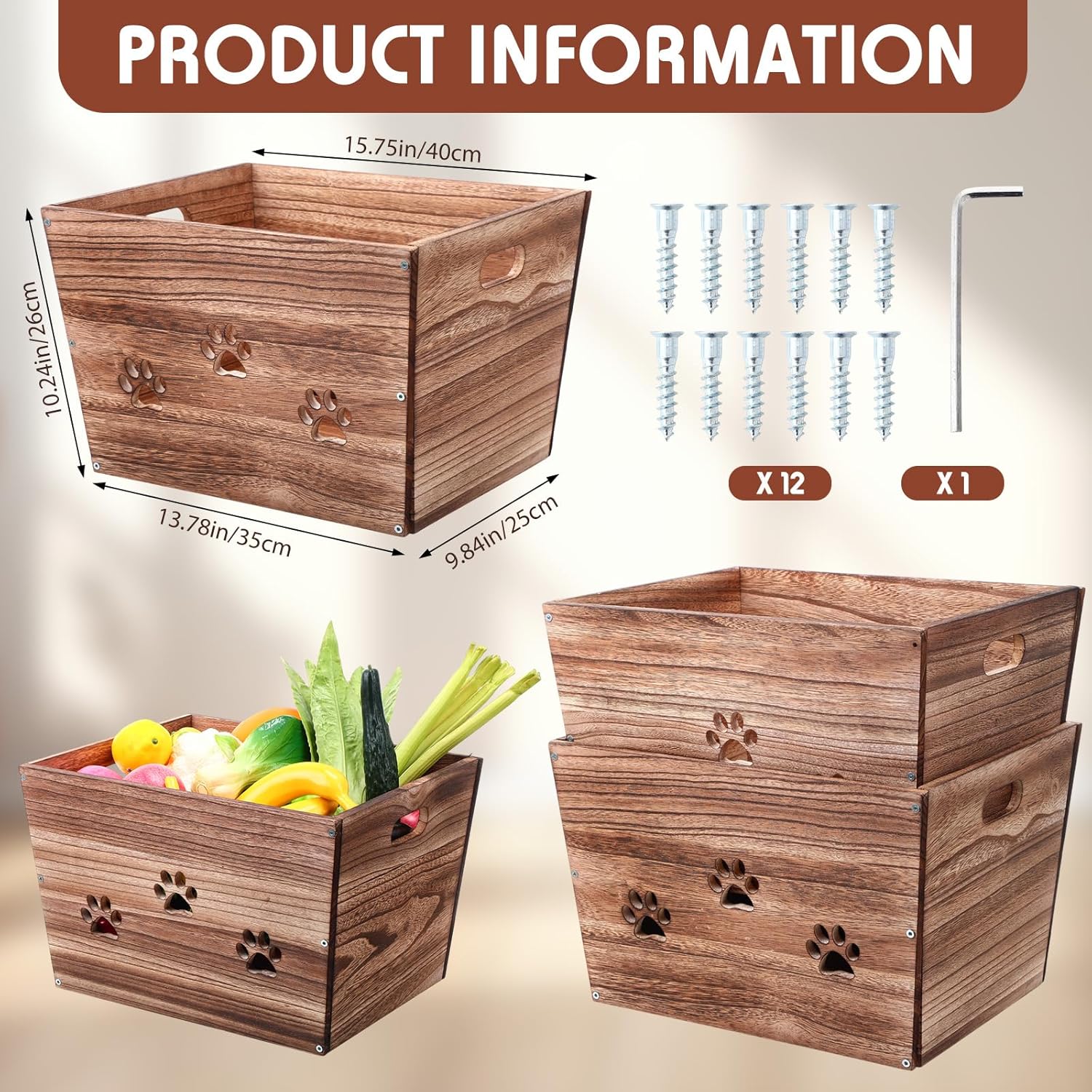 • Charming Paw Print Accents for Decor: delicate paw print carvings add whimsical charm to these decorative wooden crates; The subtle detailing brings warmth to nurseries, pet spaces, or farmhouse-style interiors; These artistic touches transform practical storage into stylish home accents that spark joy