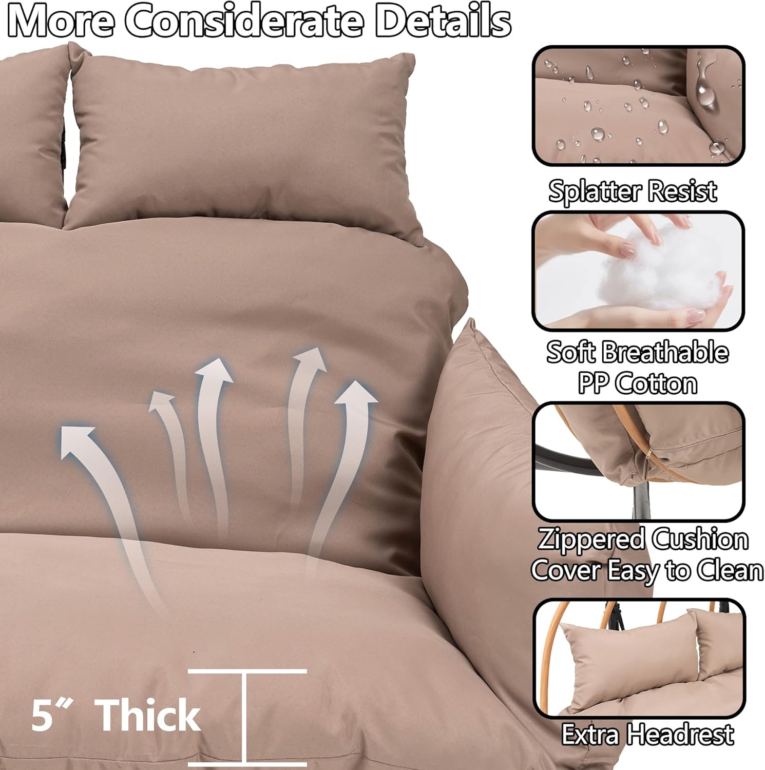 • Cozy Outdoor Seating: The double egg swing chair with stand, a 2 person patio swing chair, has a large seat and metal backrest. it offers great spine support, like a hammock swing for 2, very comfy