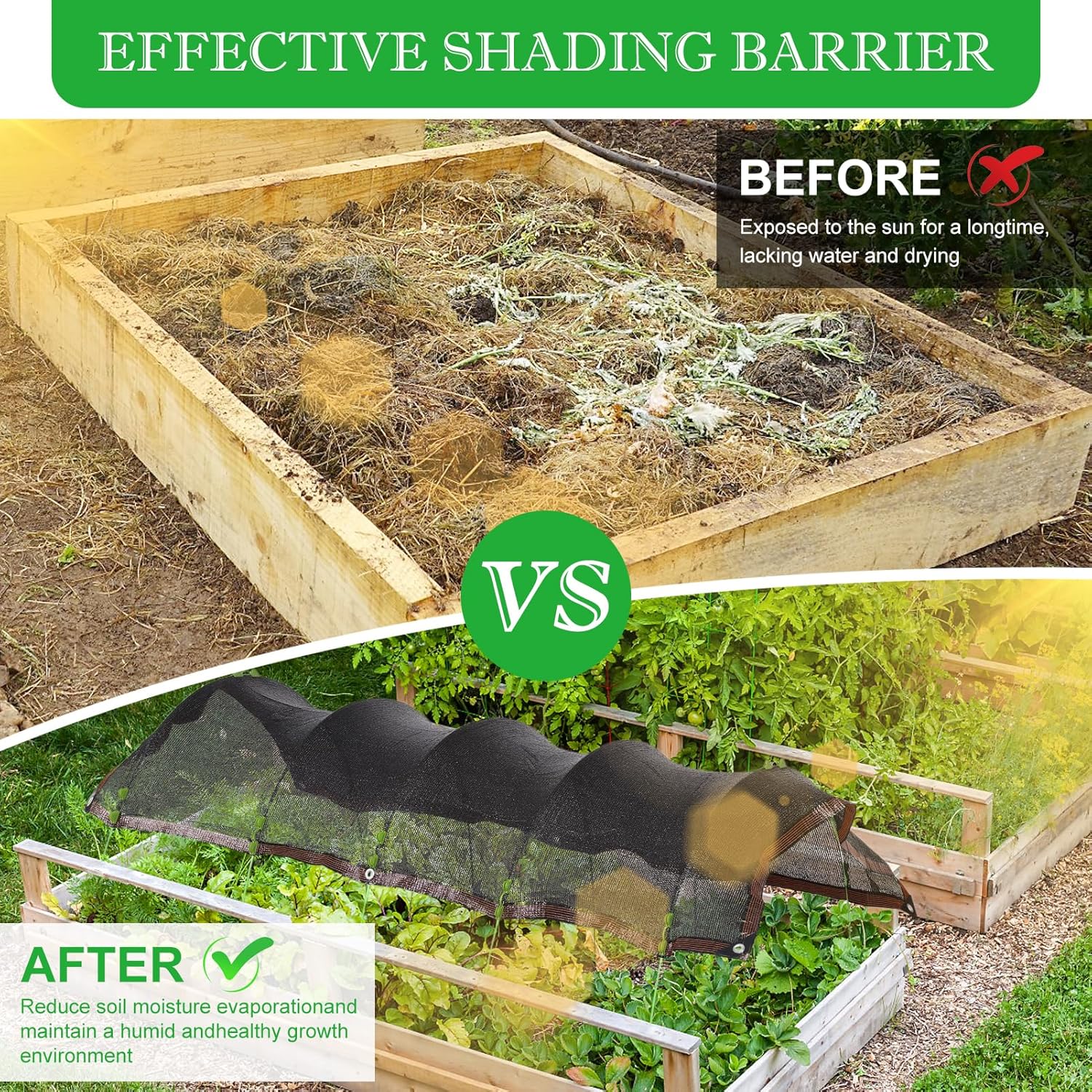 • 【Year-Round Versatility】Beyond summer shade, the hoops accept netting, frost cloth, or greenhouse film, so the same frame can guard against insects, cold snaps, or heavy rain. Perfect for raised beds, courtyards, flower borders, or vegetable plots—one kit, endless seasons of protection