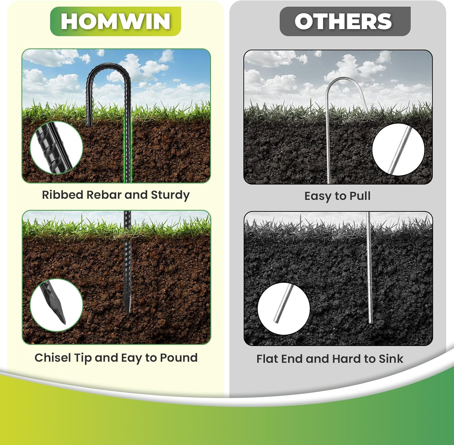 • Wide Applications: If you own any kind of tent, canopy or storage shed you know what comes with them is useless. These are perfect rebar stakes with ridges to grip the ground, widely used in camping tent, yard decorations, garden fence stakes and yard anchors.