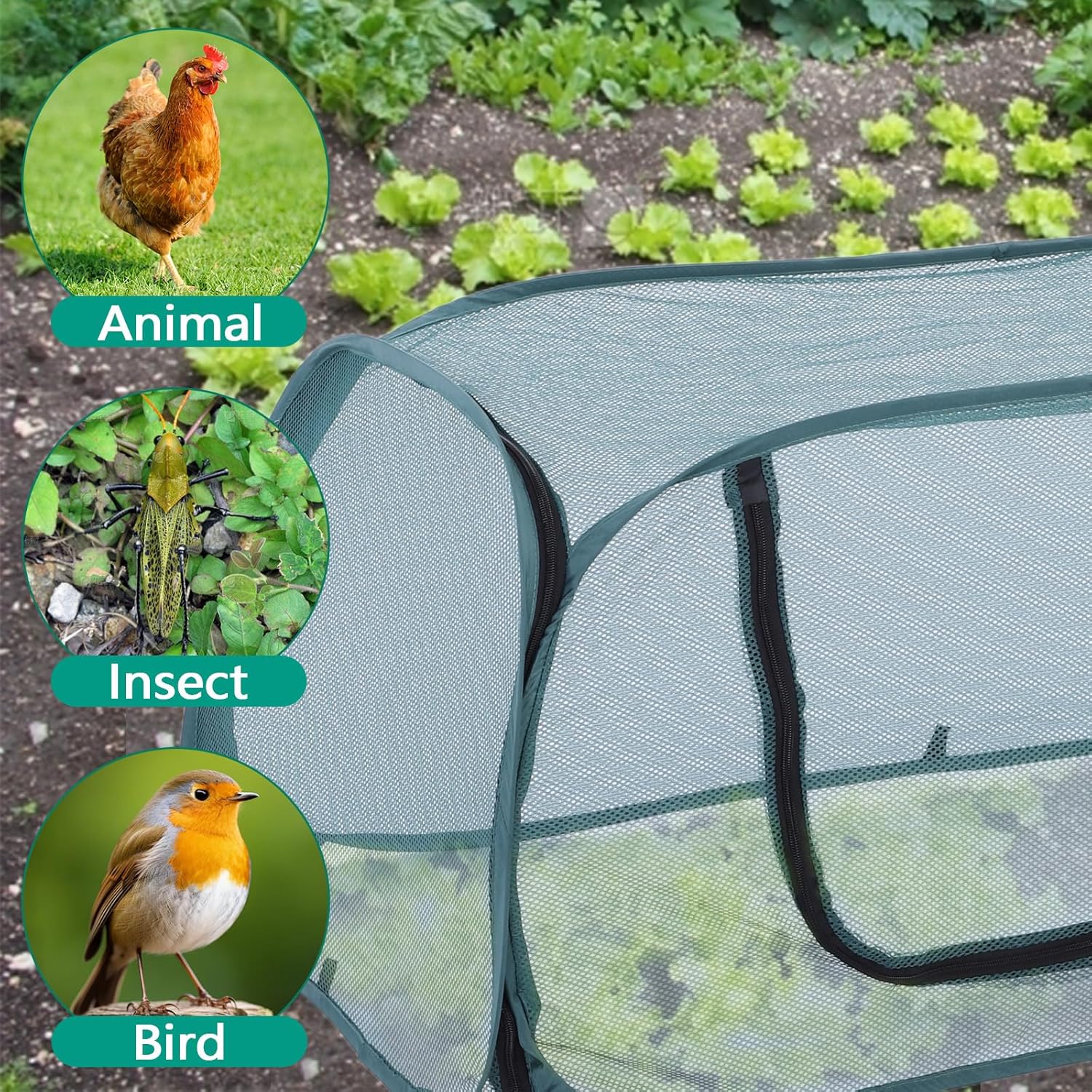 • 【YEAR-ROUND, MULTI-LOCATION DEFENSE】: Ideal for raised beds, in-ground rows, patios or market-garden plots. The cover acts as a mini greenhouse for cool spring and autumn nights, while the mesh barrier blocks birds, insects, rabbits and curious pets—delivering consistent, chemical-free protection for every stage of plant growth