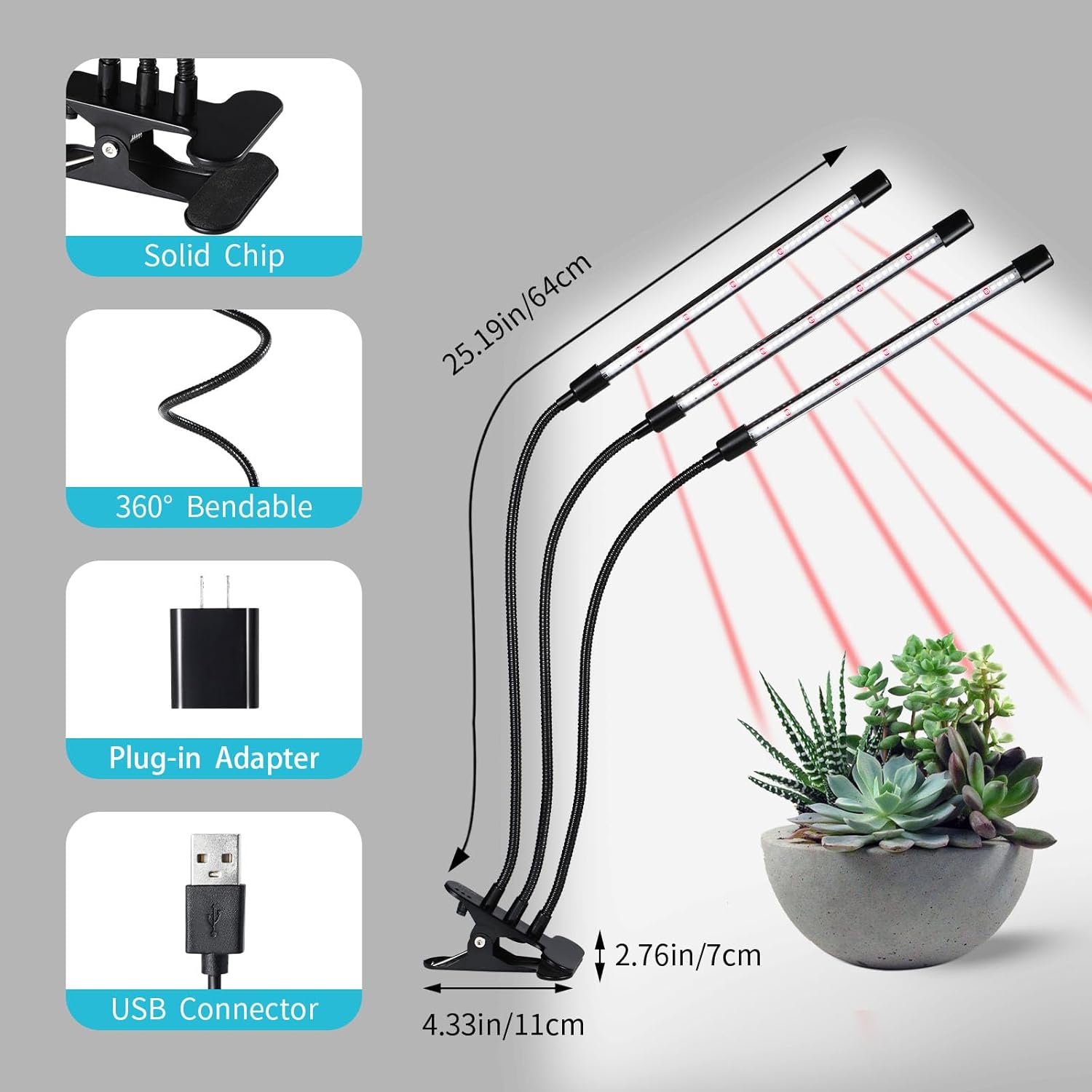 • 【Flexible Led Gooseneck & Strong Clips】Our LED grow lights come with sturdy clamps that provide sturdy and stable base support .The 360-degree adjustable gooseneck with three heads gives more light to the plants than the traditional one or two heads, allowing you more freedom to distribute the light.