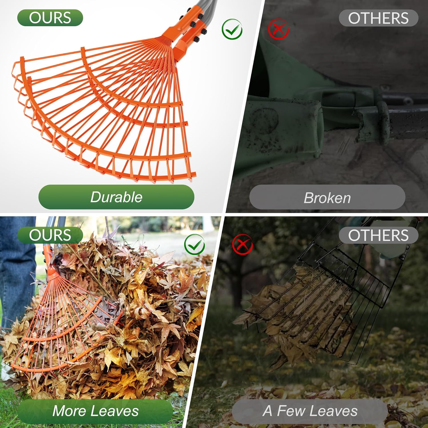 • Lightweight and Sturdy Steel Handle: Featuring a 0.8mm steel thick handle (3.3lbs), this leaf and garden grabber rake balances sturdiness and ease of use. Its lightweight design makes it easy to use without causing arm fatigue, even during prolonged use, and offers a more comfortable experience. The handle's lightness allows for better maneuverability, while the steel construction provides strength and durability. Perfect for effortless leaf grabbing and maneuvering in tight spaces.