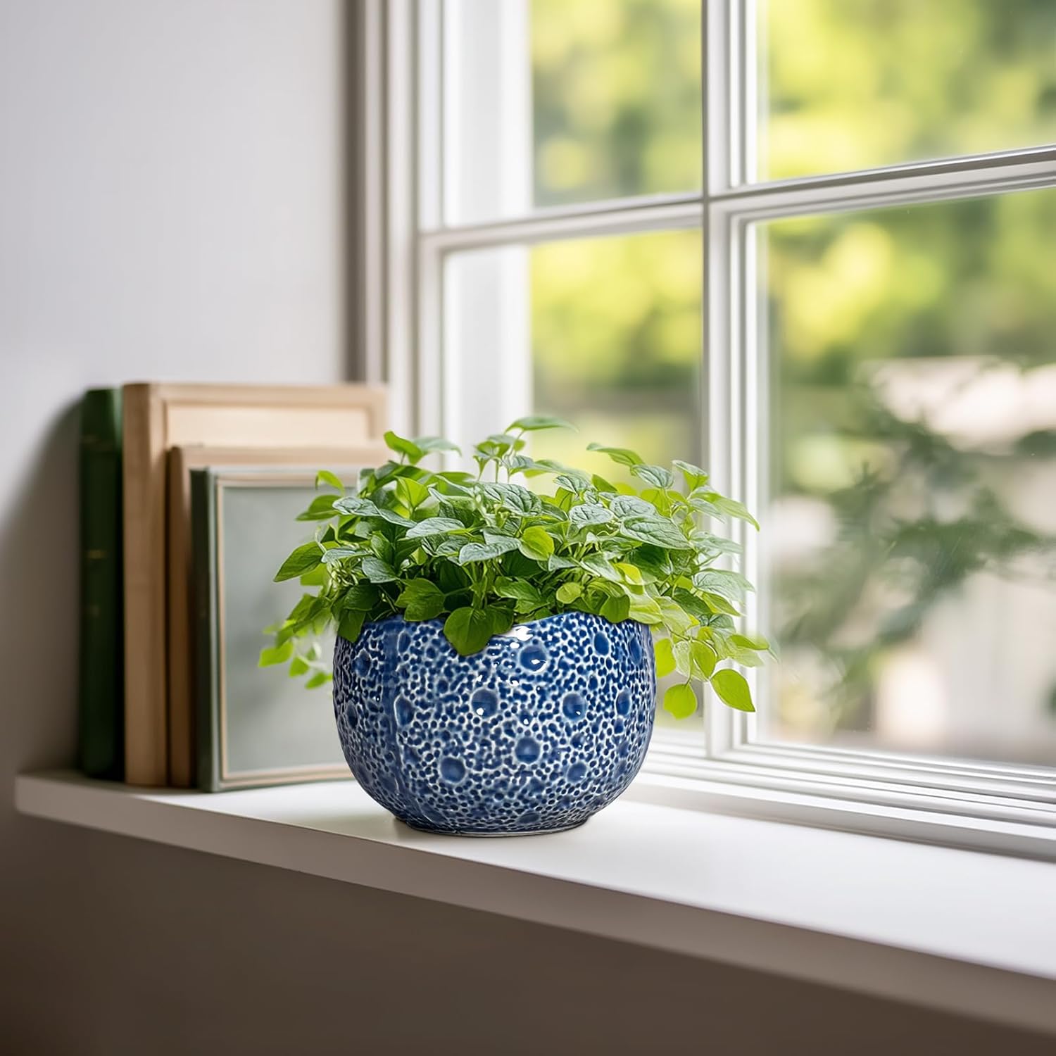 • Suitable for a variety of plants: This blue pots for plants is an ideal choice for growing orchids, snake plant, succulent plants, peace lily, pothos, money tree, zz plant, cacti, aloe vera, mint, rosemary, african violet, rainlily, parsley, chrysanthemum, herbs, and other indoor & outdoor plants