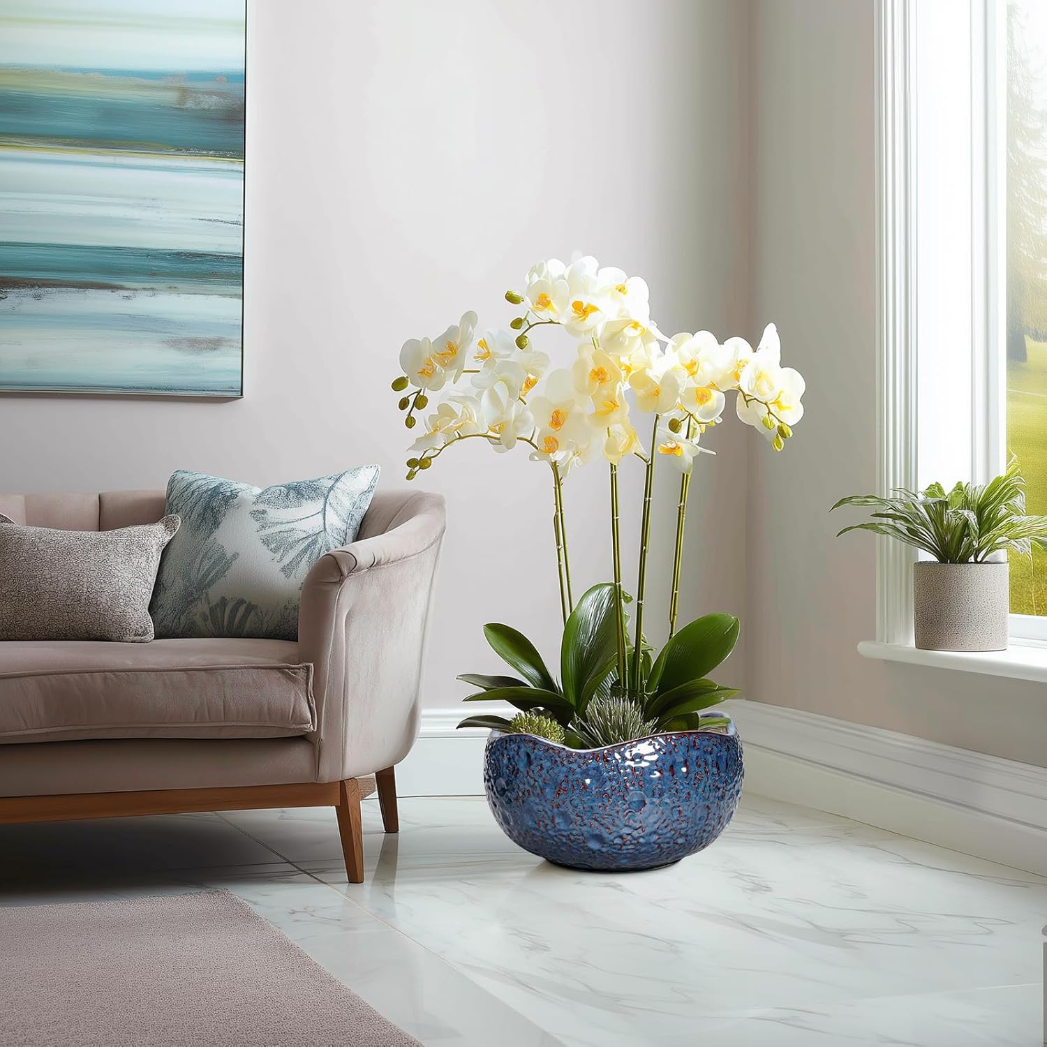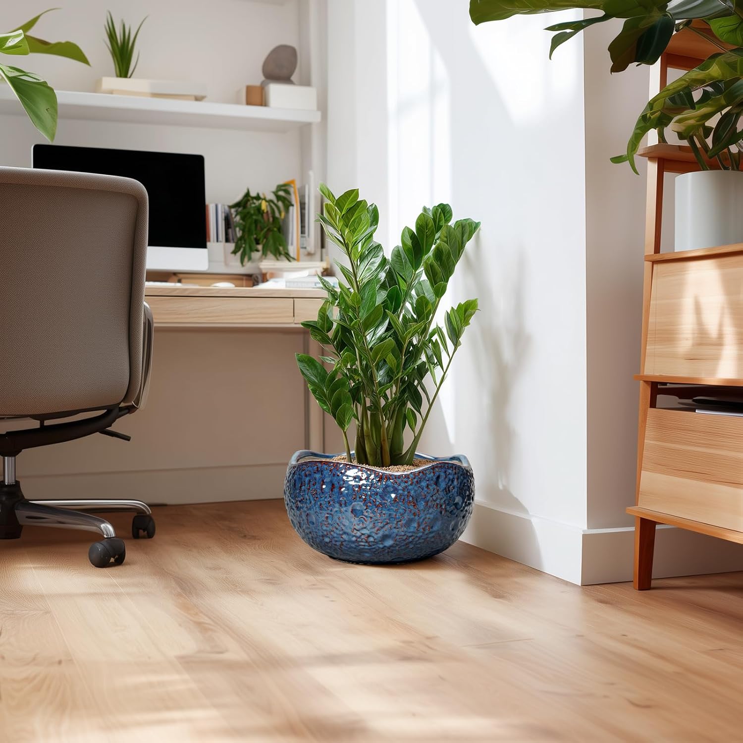 • Suitable for a variety of plants: This blue planter is an ideal choice for growing bonsai tree, snake plant, orchids, money tree, zz plant, monstera, peace lily, pothos, bired of paradise, fiddle leaf fig, pachira aquatica, succulent plants, cacti, aloe vera, mint, rosemary, african violet, rainlily, parsley, chrysanthemum, herbs, and other indoor & outdoor plants