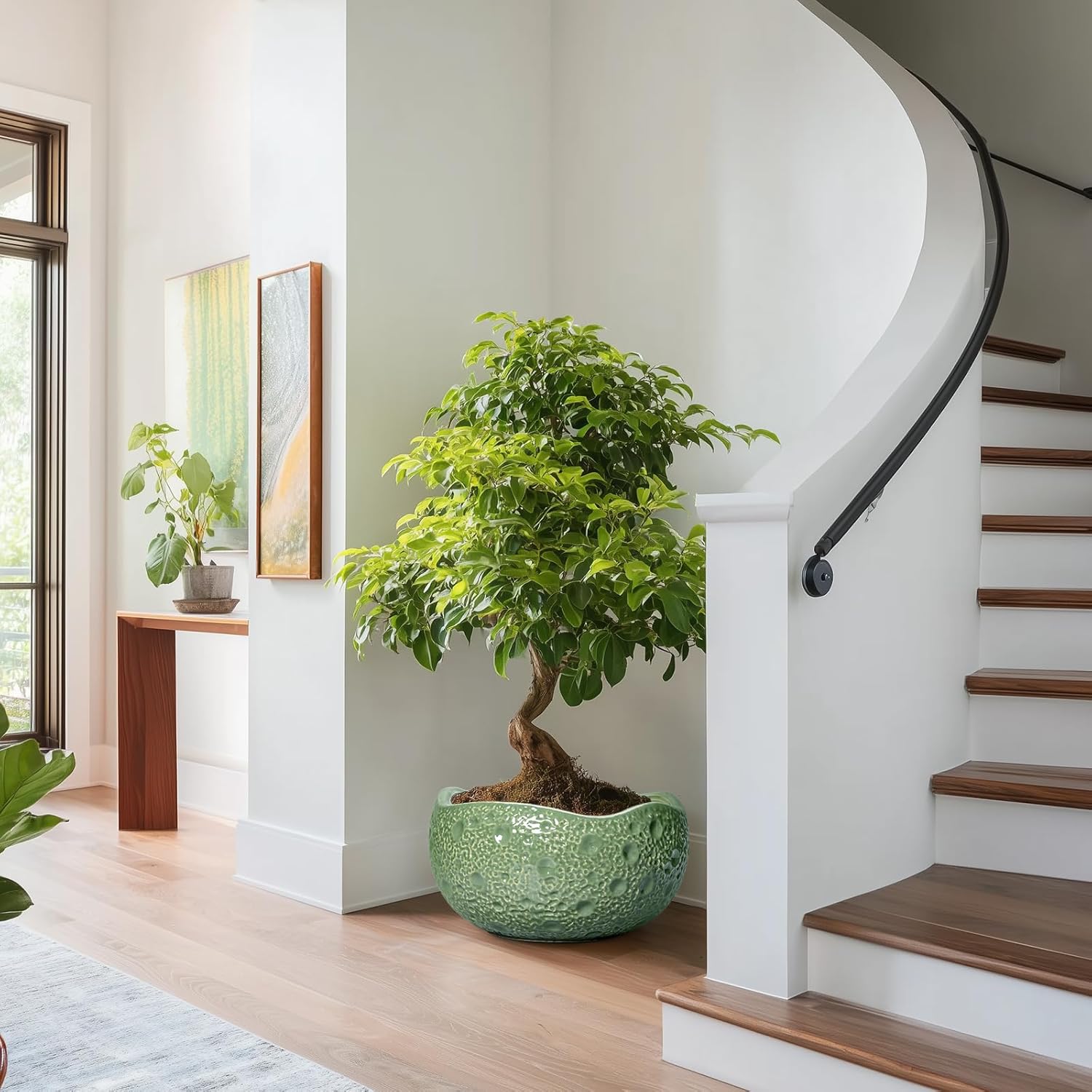 Ceramic Pots for Plants - 13 Inch Large Bonsai Pots Indoor Outdoor, Round Plant Pot with Drainage Hole, Decorative Flower Pot, Modern Unique Planters, Patio Decor, Plant Lover Gifts, Green