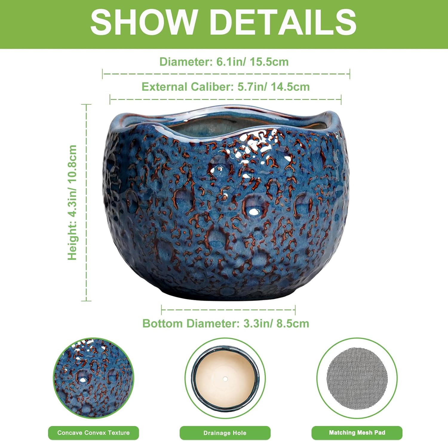 • Plant Pot with Drainage Hole: There is a drainage hole at the bottom of this ceramic flower pot, which can drain excess water and maintain the health of the plant roots. The blue planter includes a drainage network, which can better reduce soil erosion
