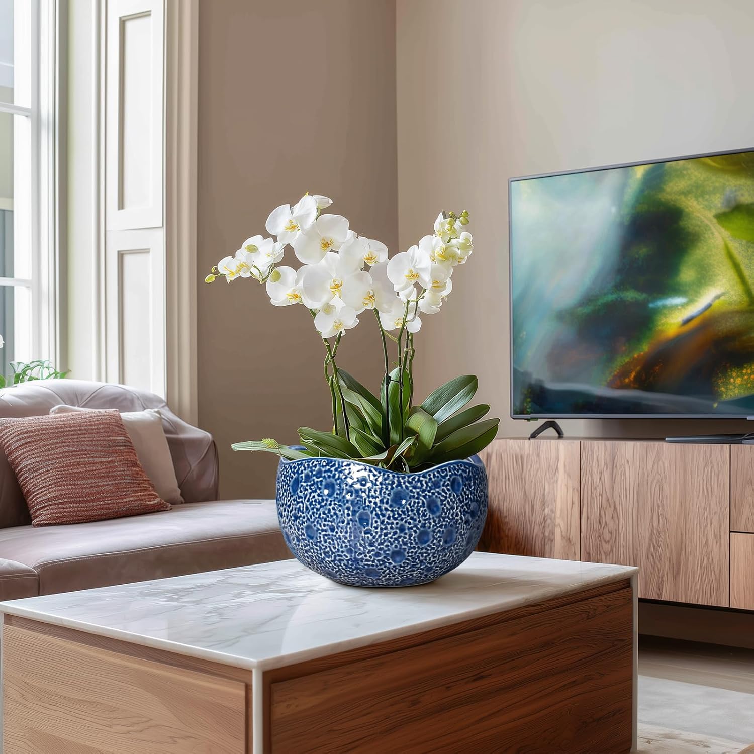 • Suitable for a variety of plants: This blue flower pot is an ideal choice for growing bonsai tree, snake plant, orchids, peace lily, pothos, money tree, zz plant, monstera, bired of paradise, fiddle leaf fig, pachira aquatica, succulent plants, cacti, aloe vera, mint, rosemary, african violet, rainlily, parsley, chrysanthemum, herbs, and other indoor & outdoor plants