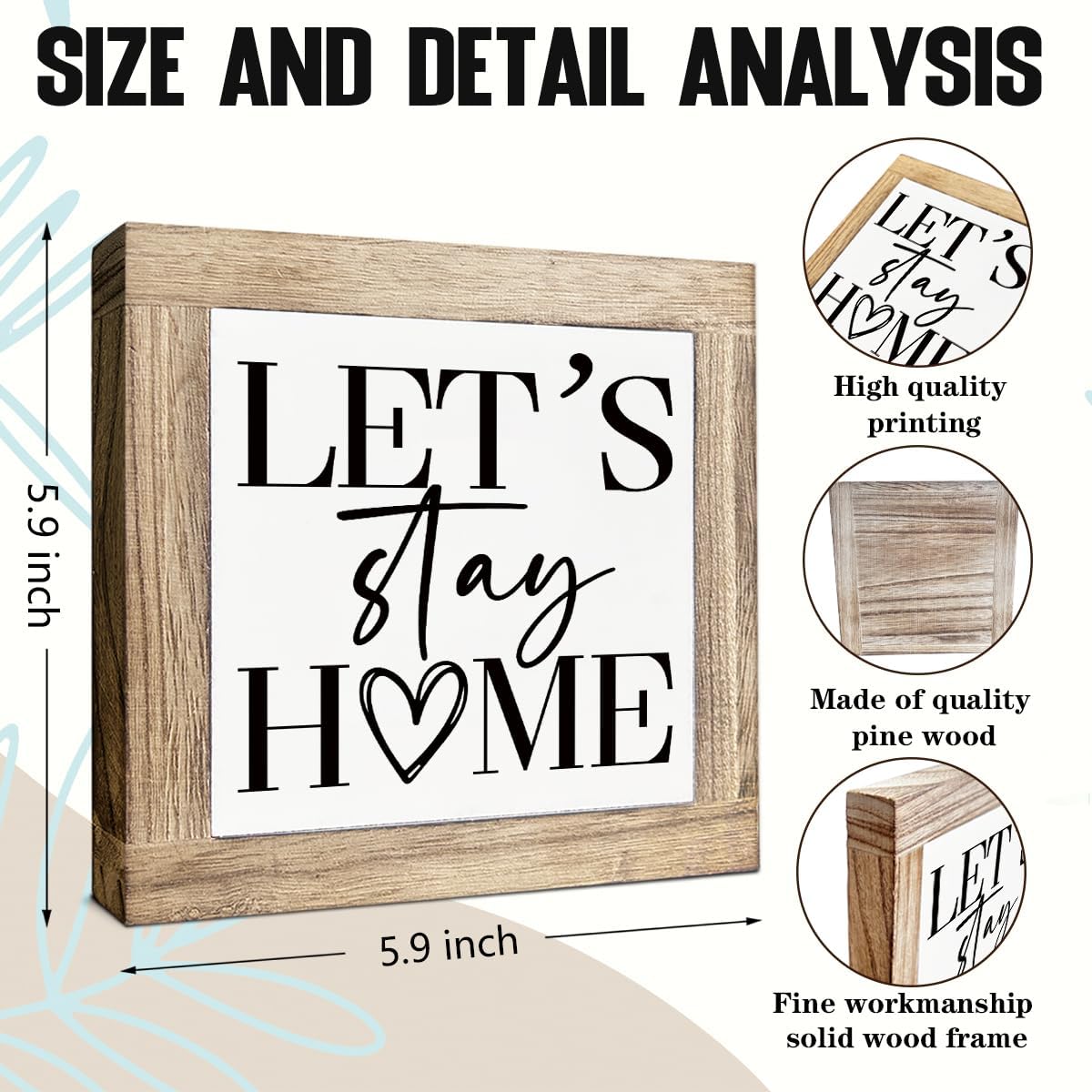 Rustic Farmhouse Home Decors, Let's Stay Home Sign, Art Decor for Farmhouse Porch, Front Door Decoration, Family Decor, Housewarming Gifts, Decorative Wooden Table Sign 5.9X5.9X0.7inches