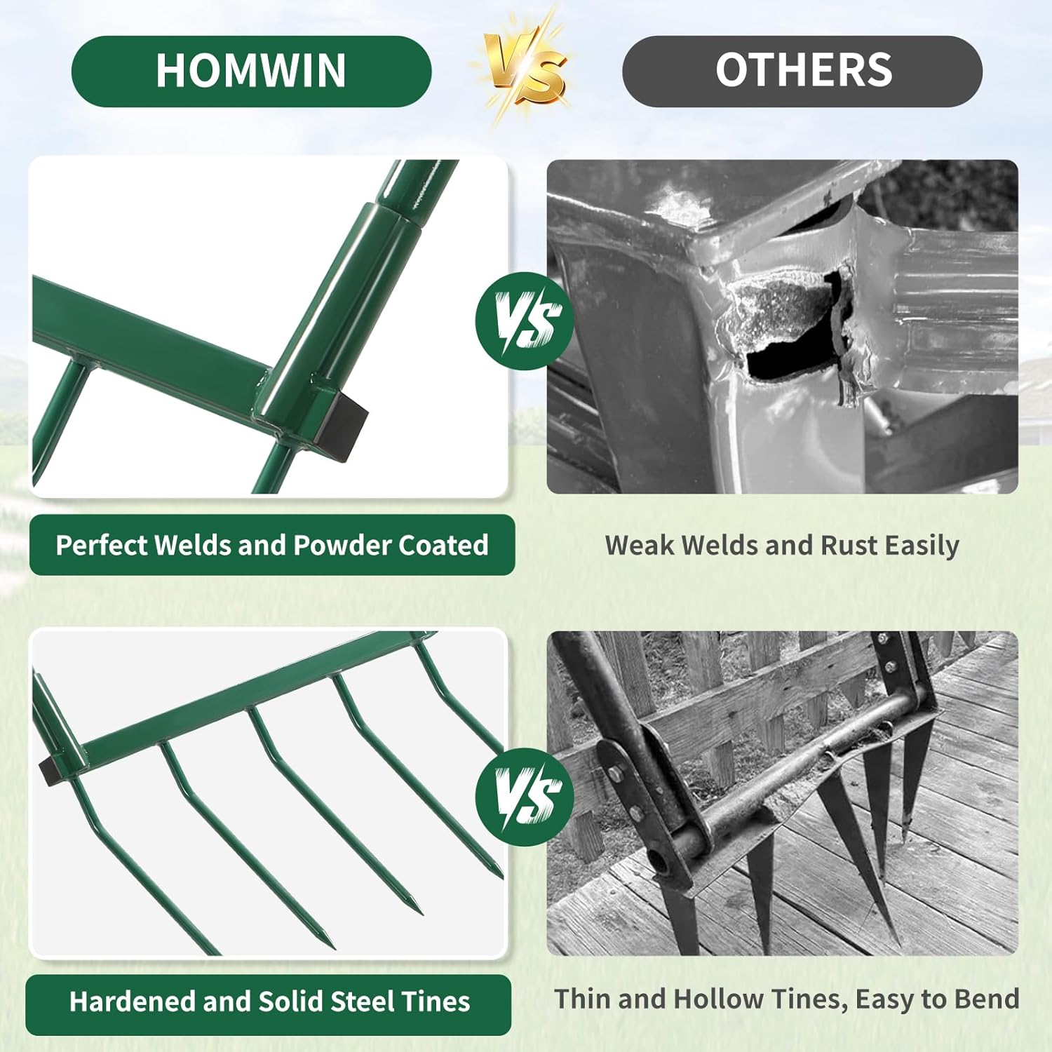• 【Easy Assembly】Quick and easy to assemble, just rotate the handle to install it. The pitch fork tines are solid, perfect for penetrating and breaking up the soil.