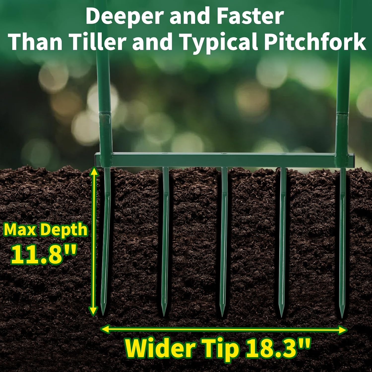 • 【Efficient Soil Aeration】 The broadfork goes deeper than the tiller and does not create compacted soil at the bottom of the tilled area. It's perfect for loosening and aerating compacted soil, improving drainage and preparing garden beds for planting.