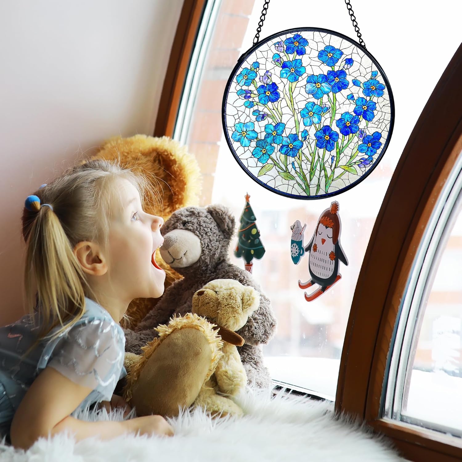 • Ready to Hang: Measures approximately 7.9 inches in diameter and includes a matching metal chain and hook. Easy to install in any window, wall hook, or decorative fixture.