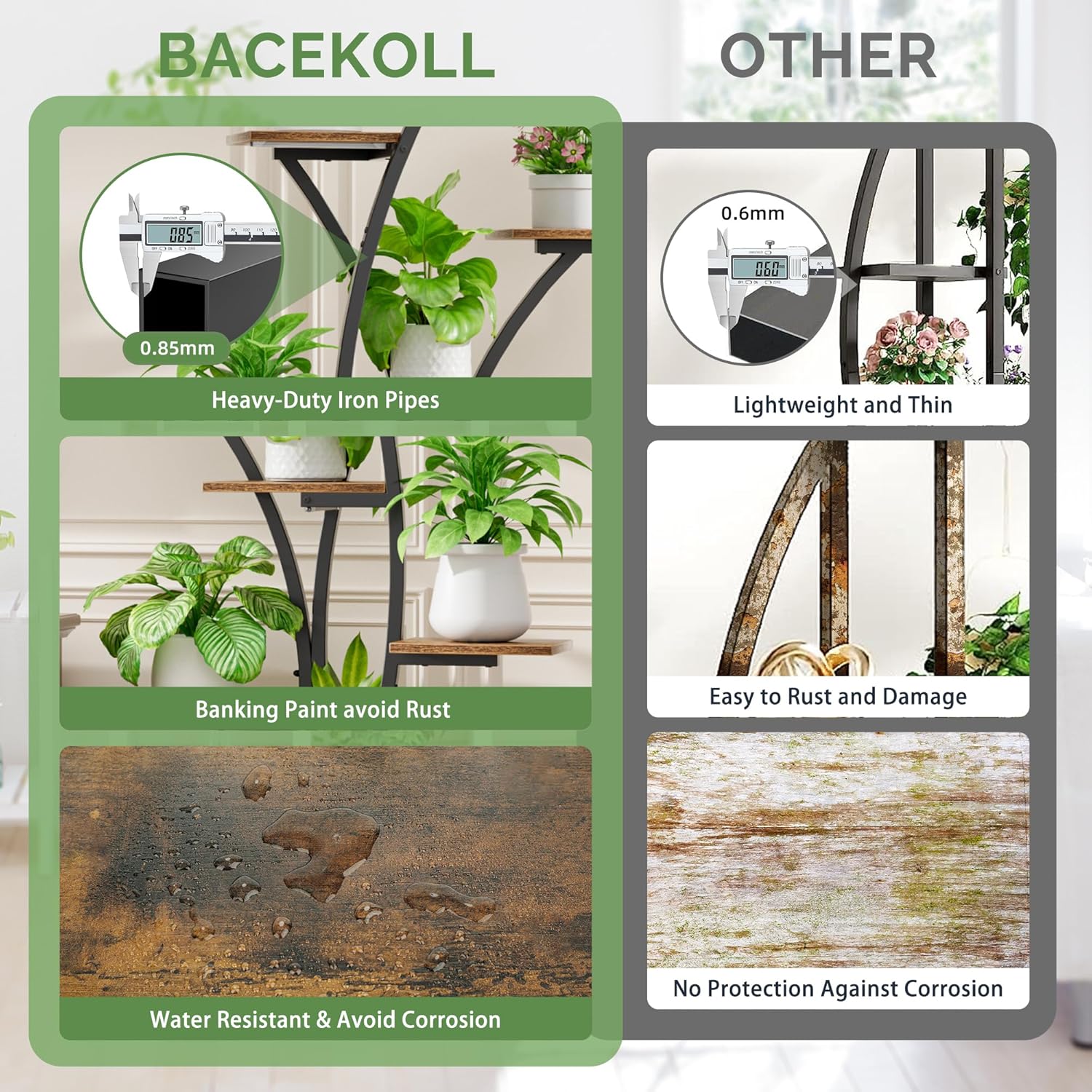 • Sturdy Construction: The frame of this plant stand is made of heavy-duty iron pipe that is 0.85mm thick, ensuring a robust structure and strong load-bearing capacity. These plant shelves are designed to support the weight of your potted plants without compromising stability