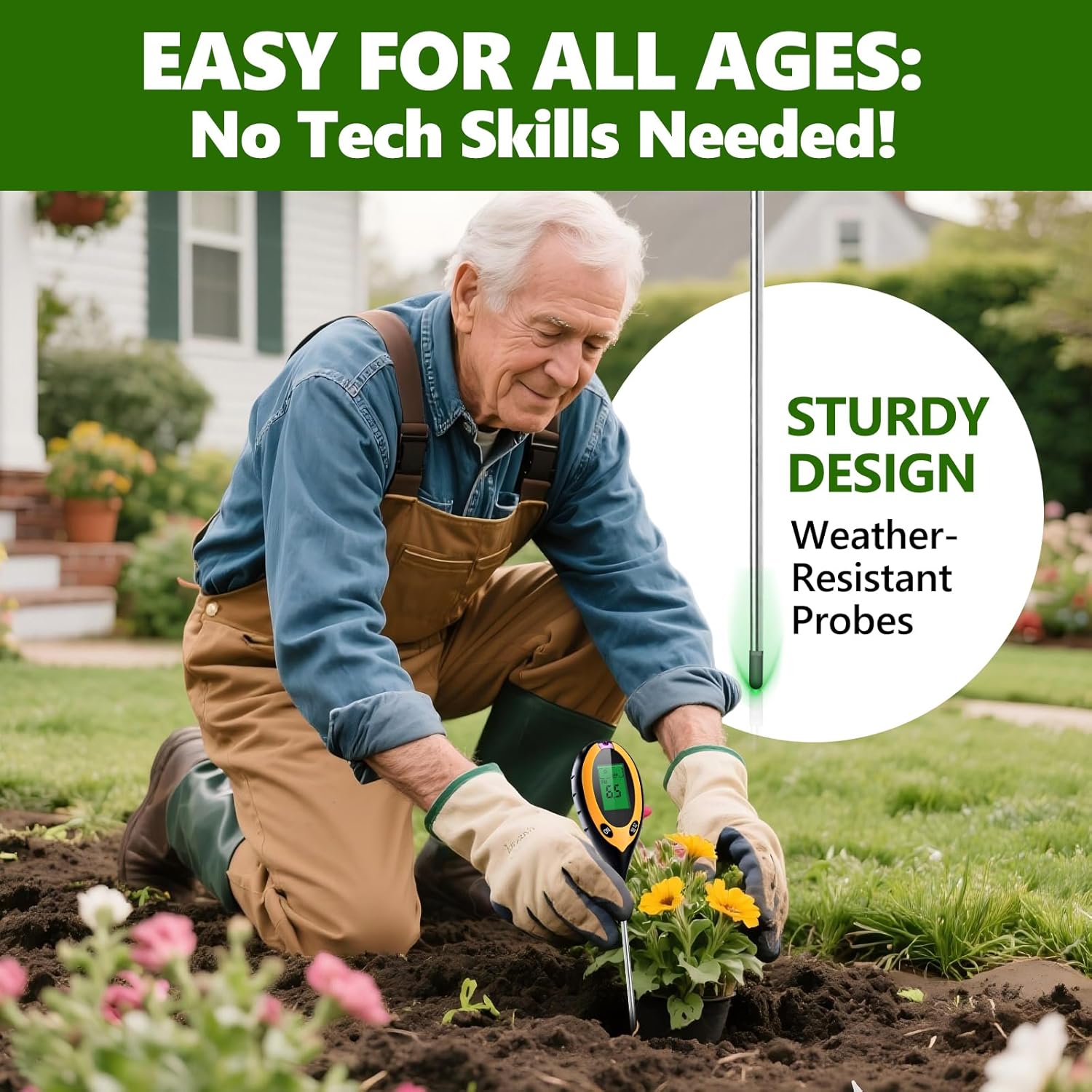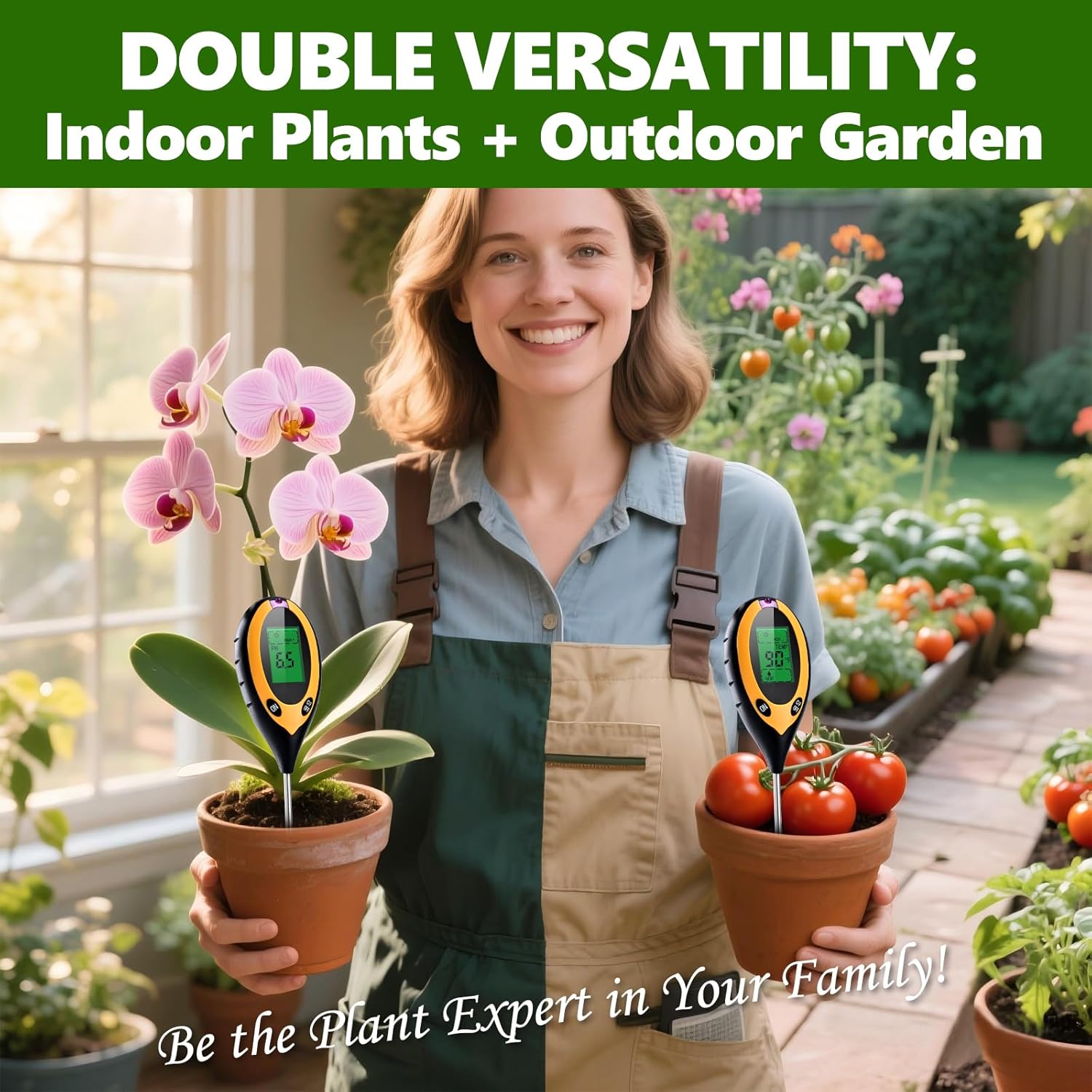 • 【2 PACK + 4-IN-1 MULTIFUNCTIONAL】Get double value with two premium 4 in 1 soil ph tester digital! One for indoor plants, another for outdoor plants. Each unit accurately measures soil pH, Moisture, Temperature & Sunlight - perfect for monitoring multiple garden areas or sharing with a friend.