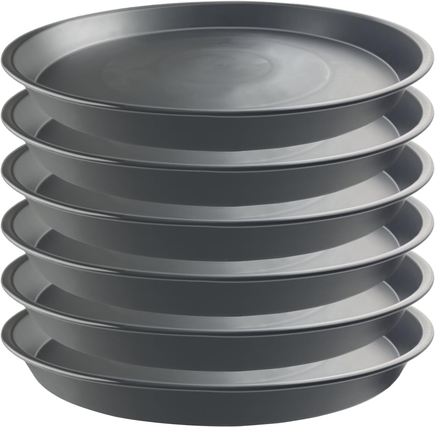 6 Pack 15 Inch Gray Plant Saucer Trays, Heavy Duty Plastic Planter Bases for Big Flower Pots, Durable Water Catcher Plates Indoor Outdoor Use
