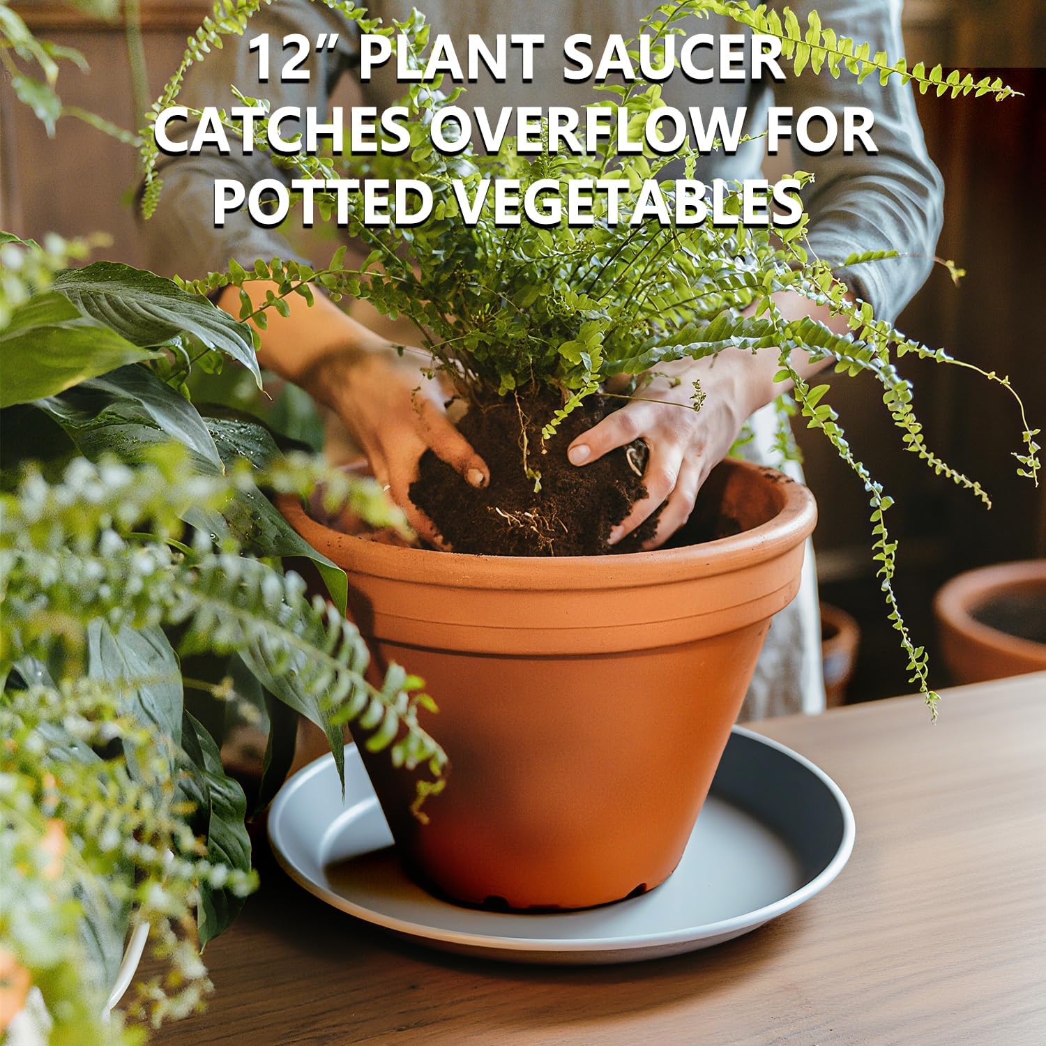 • 【6 Pack 12 Inch Gray Plant Saucers】 Includes 6 pcs durable 12 inch round plant saucers, approx. 11.6" outer diameter, 10" inner diameter, 1.25" height, 163 g each. Slight manual measurement differences do not affect normal use.