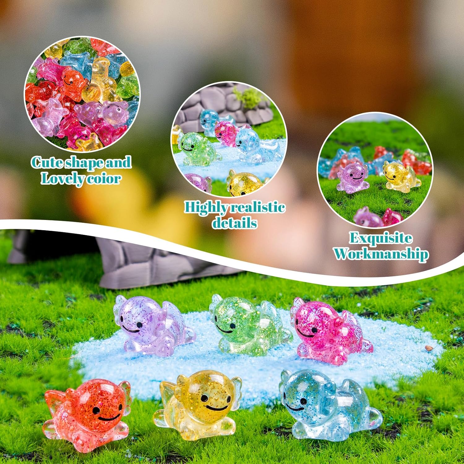 Mini Resin Glitter Axolotl 60 Pcs Variety Tiny Animals Figures Miniature Little Small Salamander Figurines Bulk for Micro Fairy Garden Landscape Accessories Hide Crafts Decor