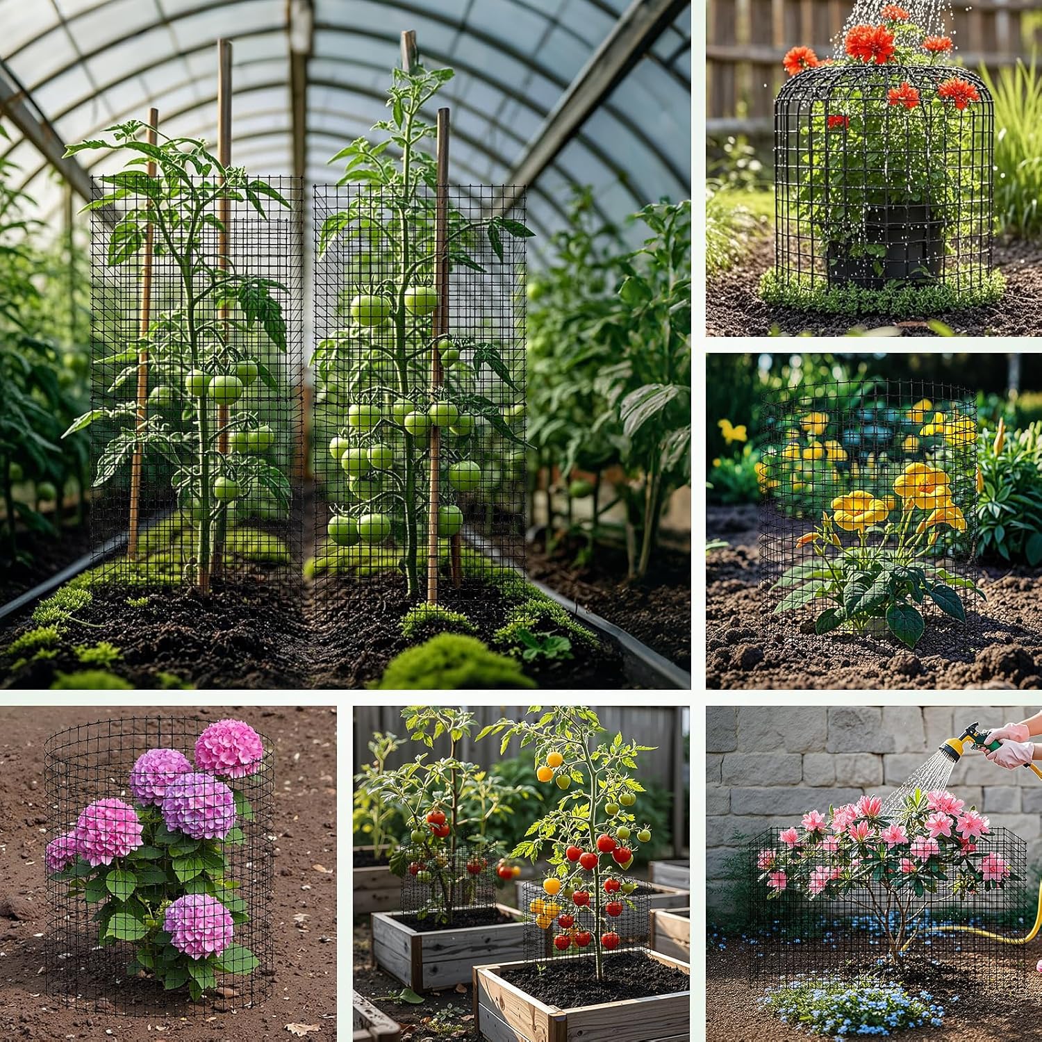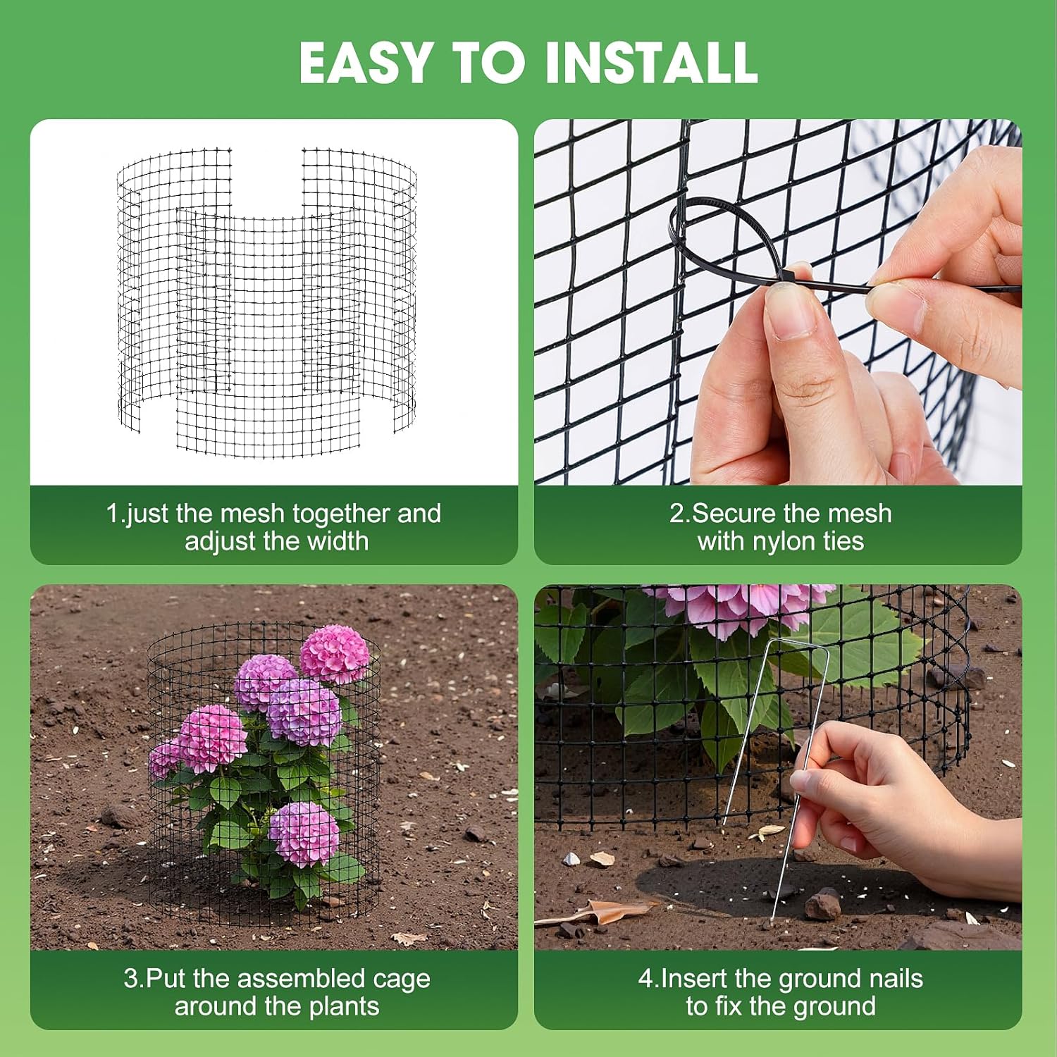 • DIY MULTI-SHAPE PLANT PROTECTION CAGE: You can assemble 3 pieces wire mesh into a cylindrical plant cage, or 4 pieces wire mesh into a rectangular protection cage, or even more mesh into a larger plant wire cage to protect your plants from harm, use the wire ties included in the package to tie up, circle the plant and then fix it with metal stakes, very simple to install and easy to use.