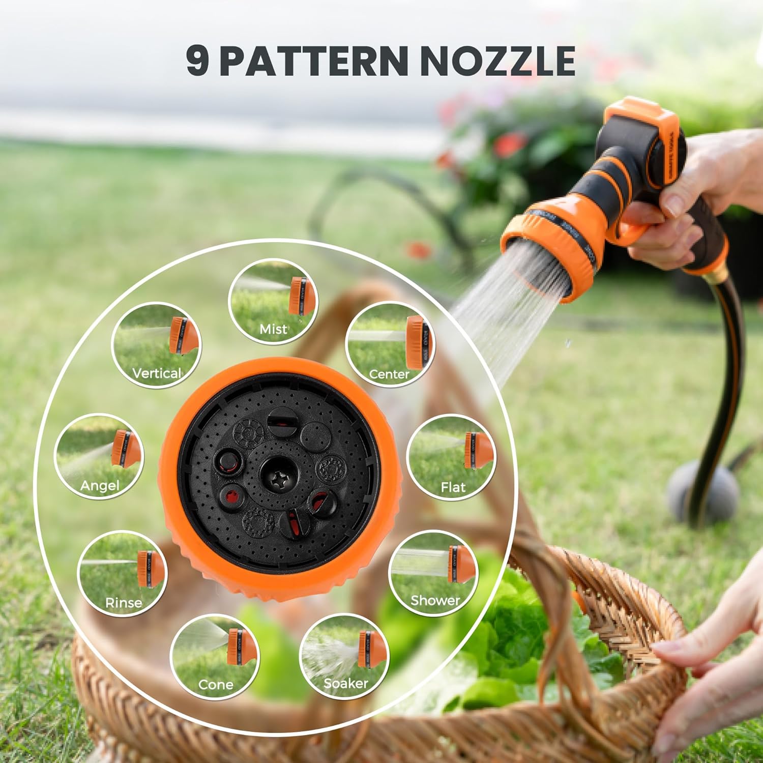 • 9 Adjustable Spray Patterns: Garden Hose nozzle supports 9 patterns to fulfill your different watering purposes. Can be used for car washing, watering, cleaning, pet bathing, etc.