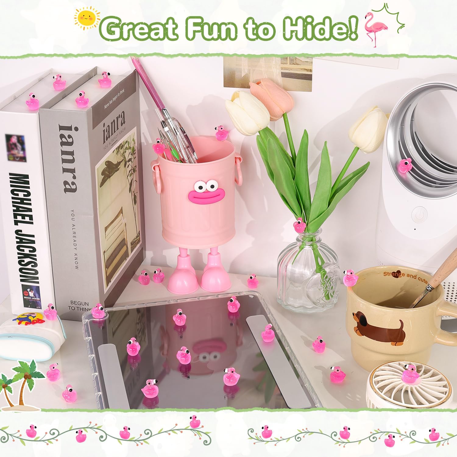 • PACKAGE CONTENT -- One Package includes 200 pcs rose pink mini flamingo ducks glow in dark, each tiny figure is crafted with intricate details, making them cute and eye-catching.Use them to add charm and whimsy to dollhouses, or having hide games to enhance fun