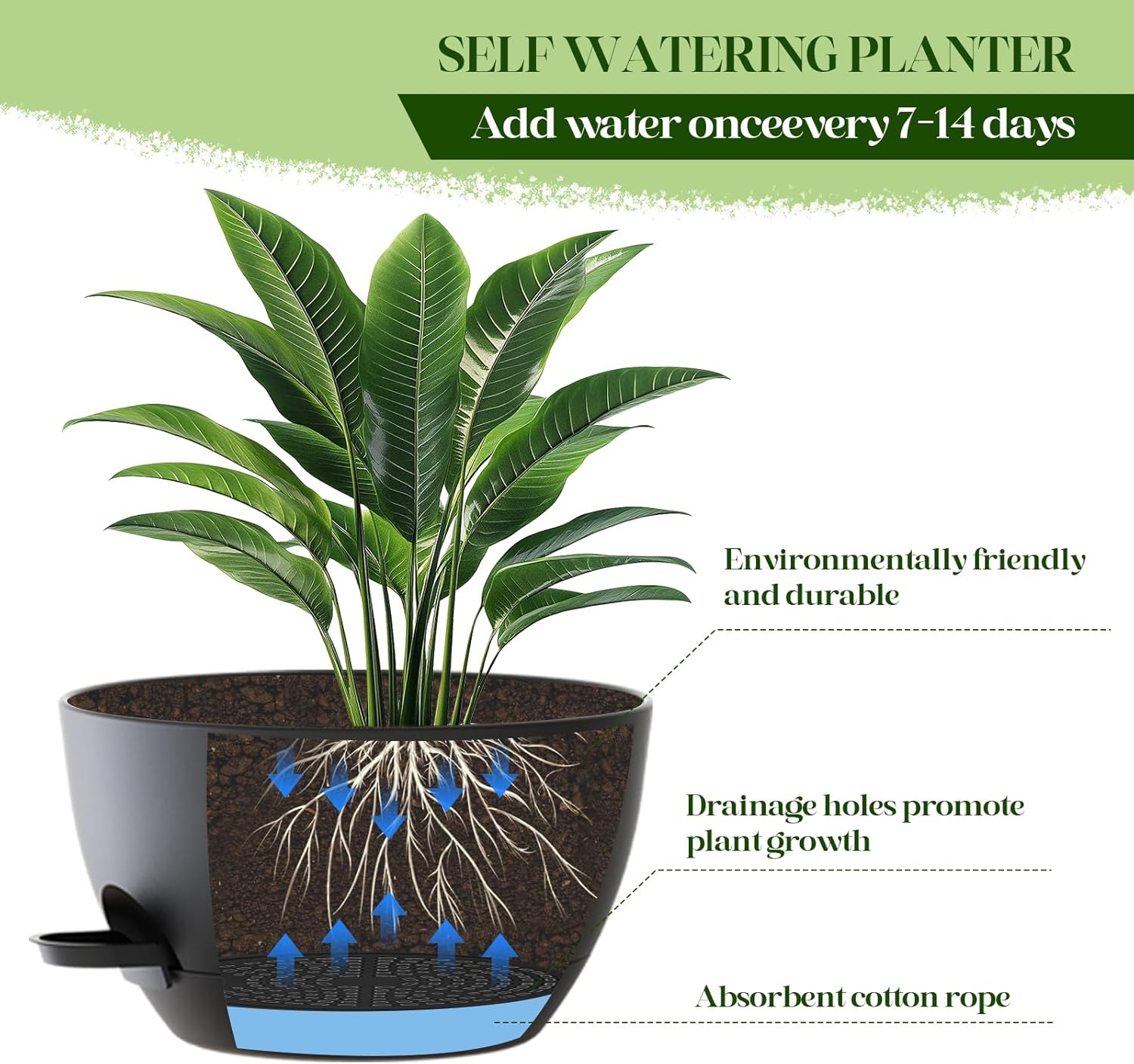 • ✅ 2 Large Self-Watering Planters: Double the value! Includes two 10-inch wide plastic hanging planters with built-in self-watering reservoirs to reduce the need for frequent watering and keep plants healthier.