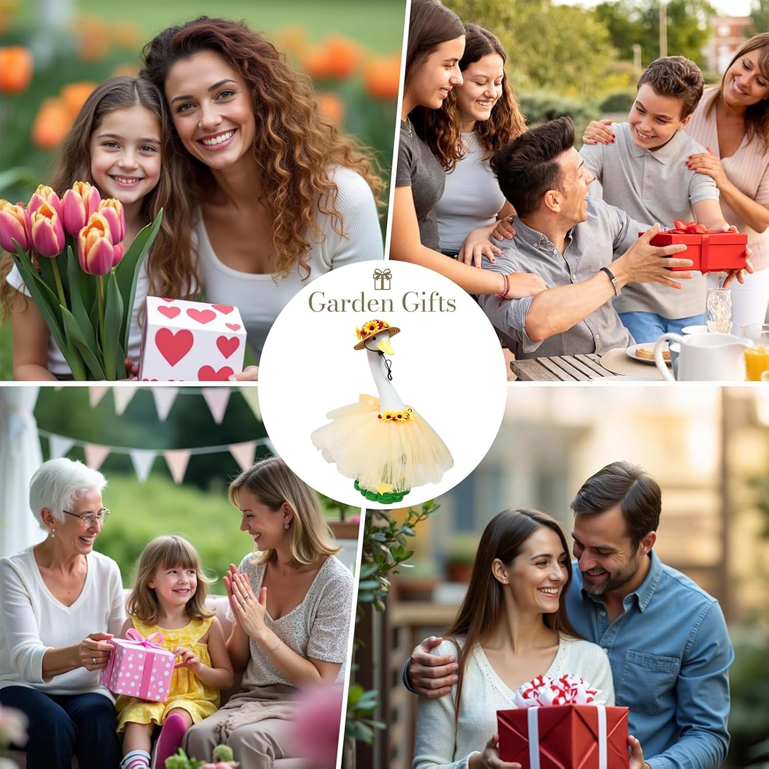 • 【Creative Festive Gifts】Tutu collar outfits and hat are all adjustable, reusable and durable. Featuring bright and cheerful sunflower elements, friendly large porch goose throughout the year creates a playful scene that stands out, making it a delightful addition to celebrate Birthday, Wedding, Anniversary, Christmas, Halloween, Thanksgiving, Housewarming, Mother’s Day and more. Yard goose statue is also an excellent gift for friends, family members, neighbors, relatives and garden lovers.