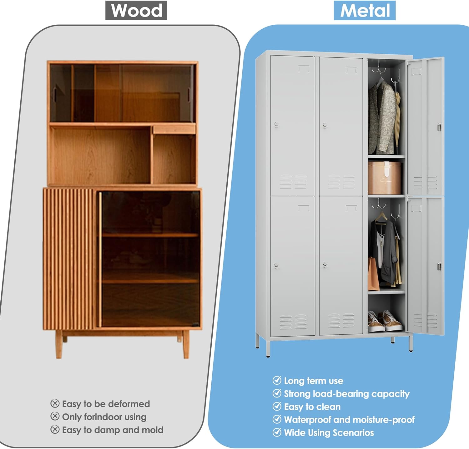 • 【Large Storage Capacity】6 doors metal lockers for employees with Lock 15.75"D x 35.43"W x 72"H.locker employee Equipped with 18 hooks,it can meet your needs for storing different sized items and meet most of your daily needs.