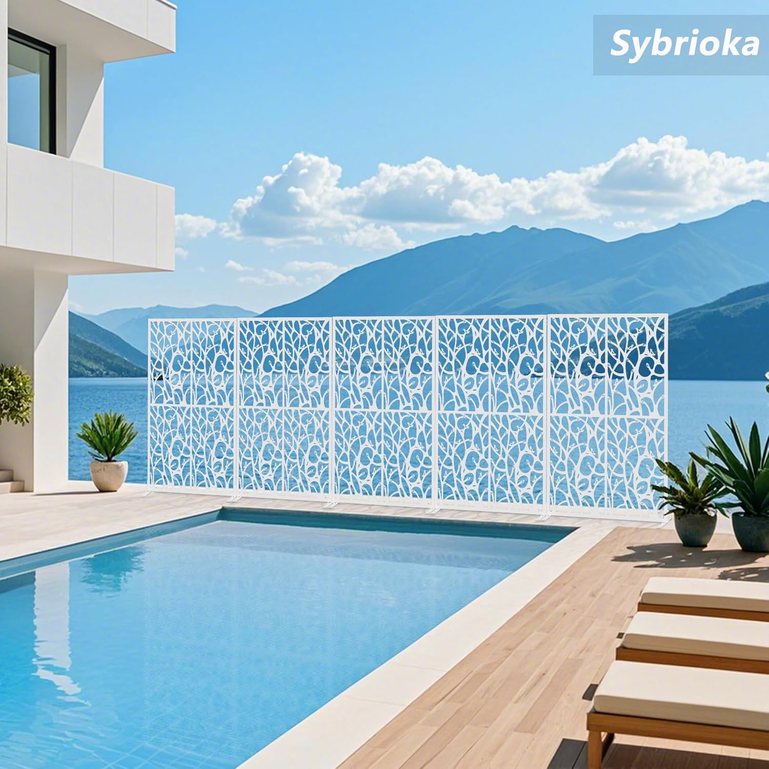 Metal Privacy Screen Outdoor W3.8Ft x H 6Ft Patio Privacy Panels Free Standing Divider Decorative 2 Pack for Balcony Garden Room Lawn Deck(2, White Bird)