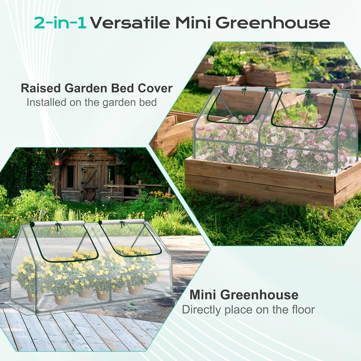 • Versatile Design: Lightweight and tool-free to assemble, this portable greenhouse fits perfectly on balconies, patios, or raised garden beds. Whether you’re germinating seeds indoors or sheltering plants outdoors, it adapts to your gardening needs
