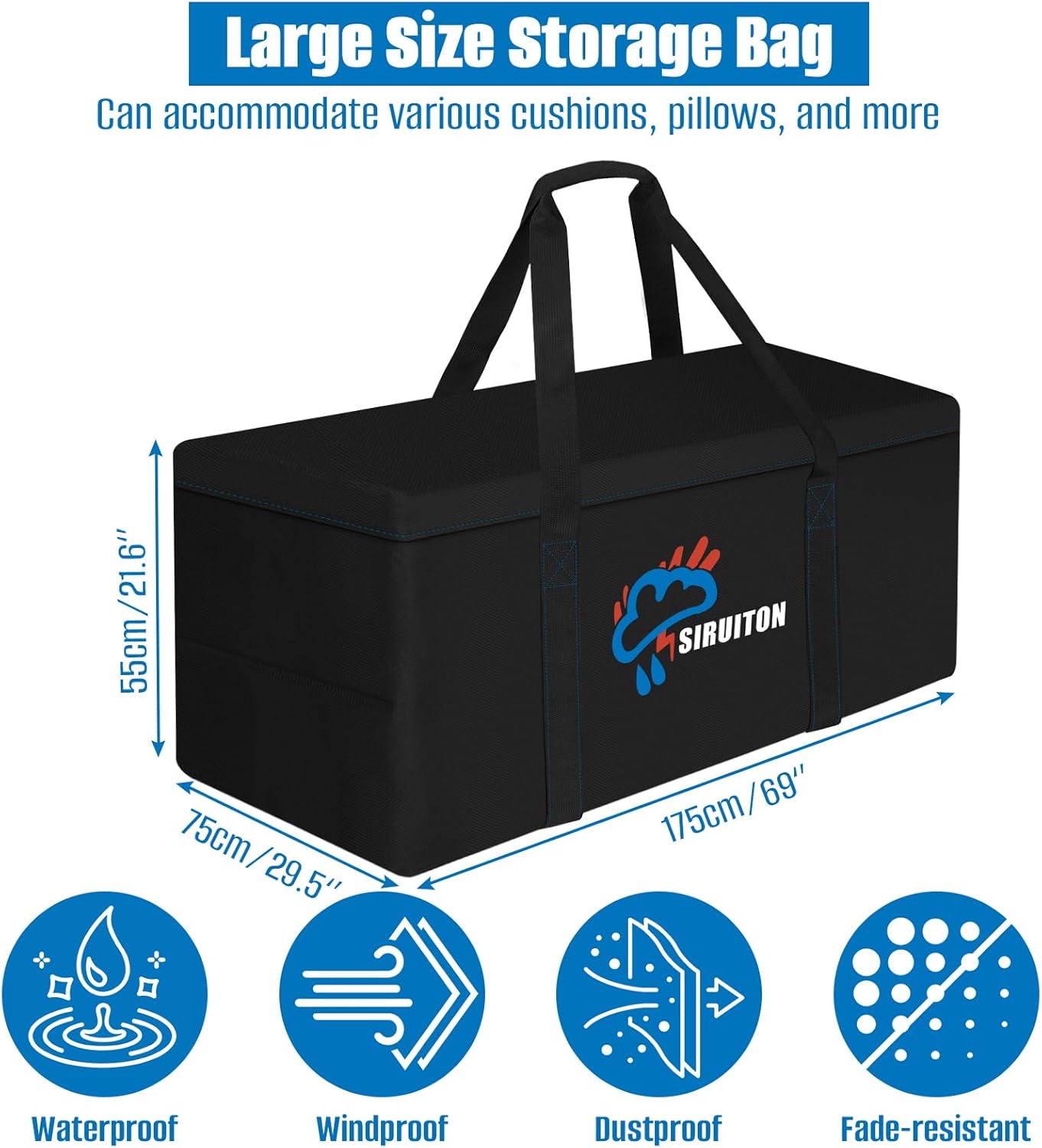 SIRUITON 68.9”L x 29.5”W x 21.6”H Outdoor Cushion Storage Bag,Patio Furniture Cushion Storage Bag,Heavy Duty Rip Proof 600D Oxford,with Handle and Zipper of Waterproof Garden Cushion Storage Covers