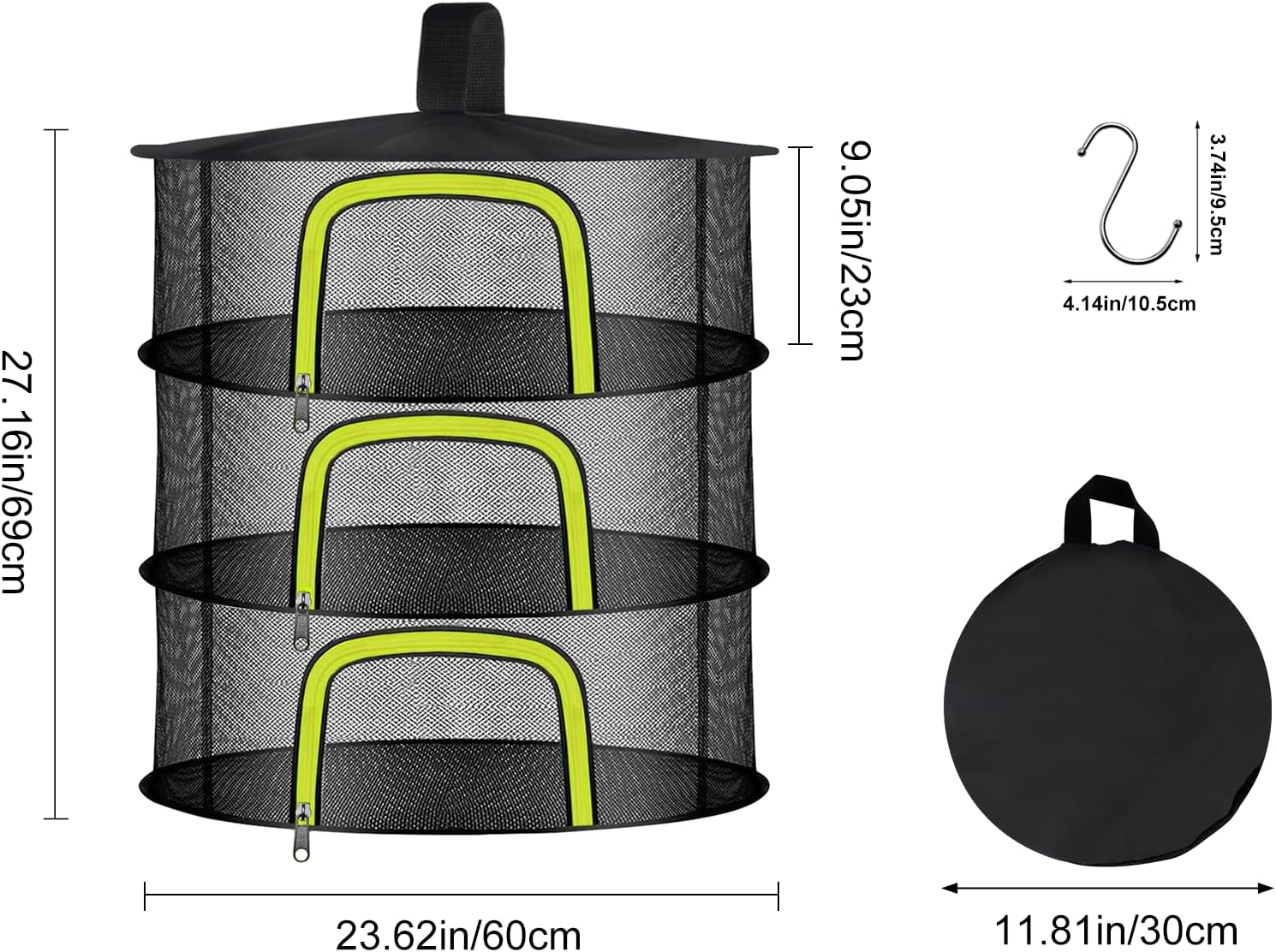 • Size and Usage: There are 1-8 layers of herb drying racks to choose from, with the 3 layer measuring 23.6 x 23.6 x 25.98 inches. 3 layer drying net can dry of plants, flowers, buds, bulbs, fishes, weeds, clothes, jerky, meat, food, basil, vanilla, onion, garlic, cinnamon, nuts, and etc