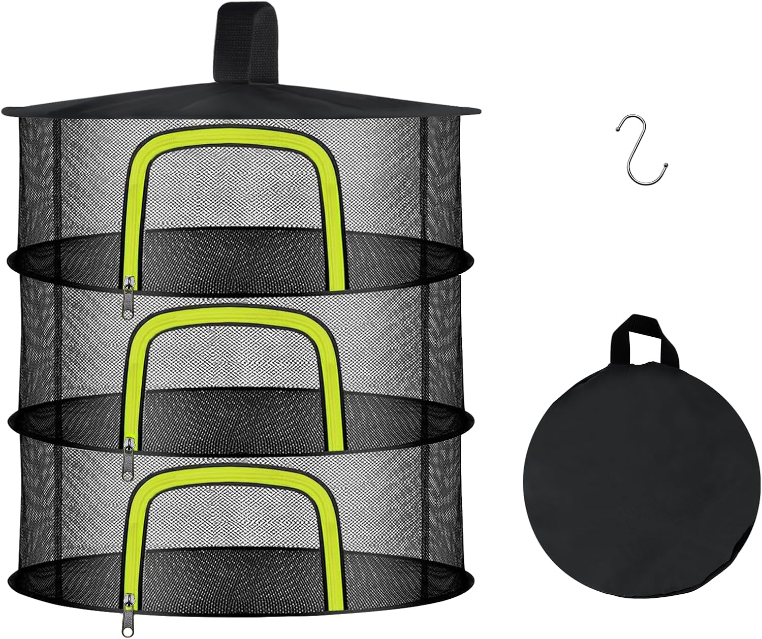 3 Layer Herb Drying Rack, Herb Drying Rack Hanging Mesh, Foldable Bud Drying Net with U-Shaped Zipper, Hooks, for Drying Herbs Plants, Flowers, Fruits, Food, Camping (3 Layers-23.62'')