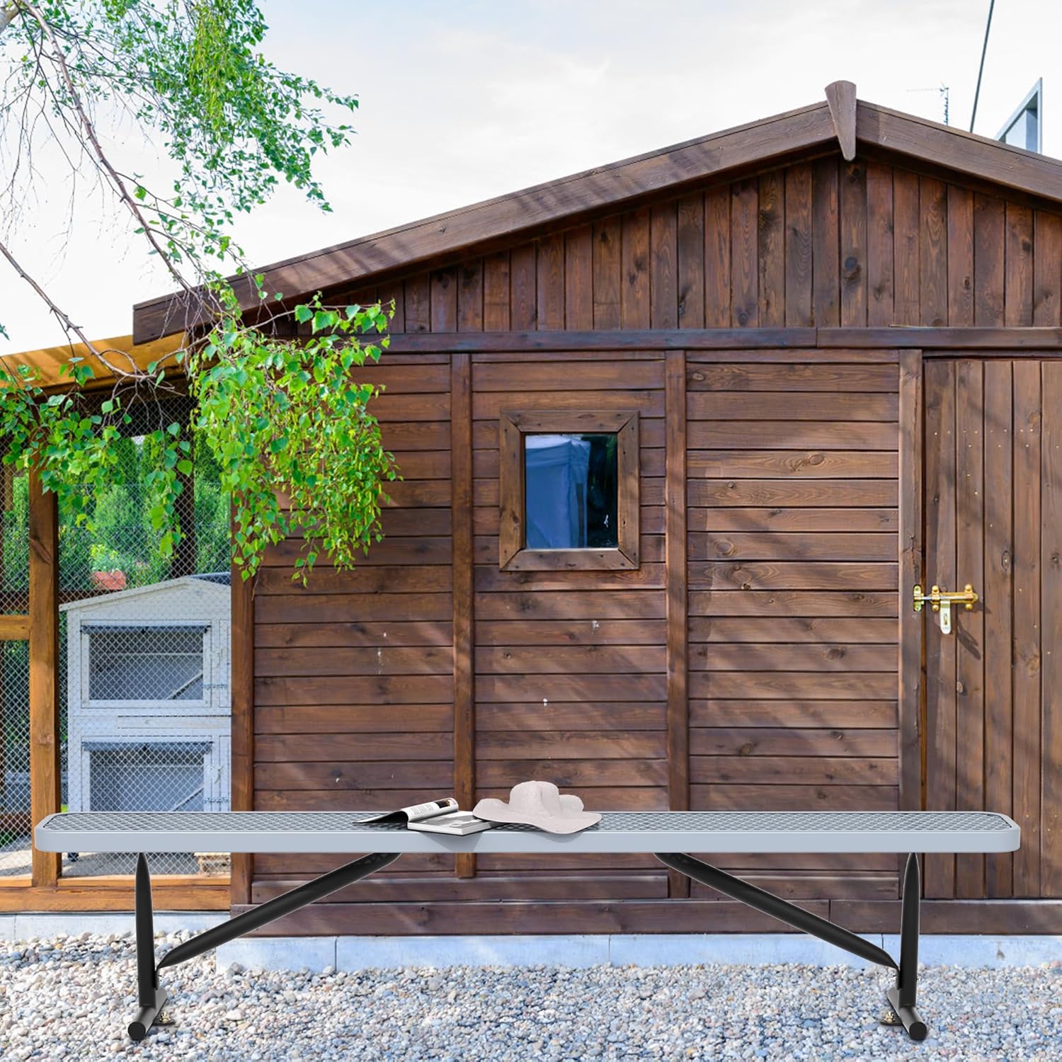 8 Feet Heavy Duty Metal Park Bench for Outside, Outdoor Bench with Portable Frame, Commercial Benches for Shopping Mall, Store, Park, Patio, Deck, Grey