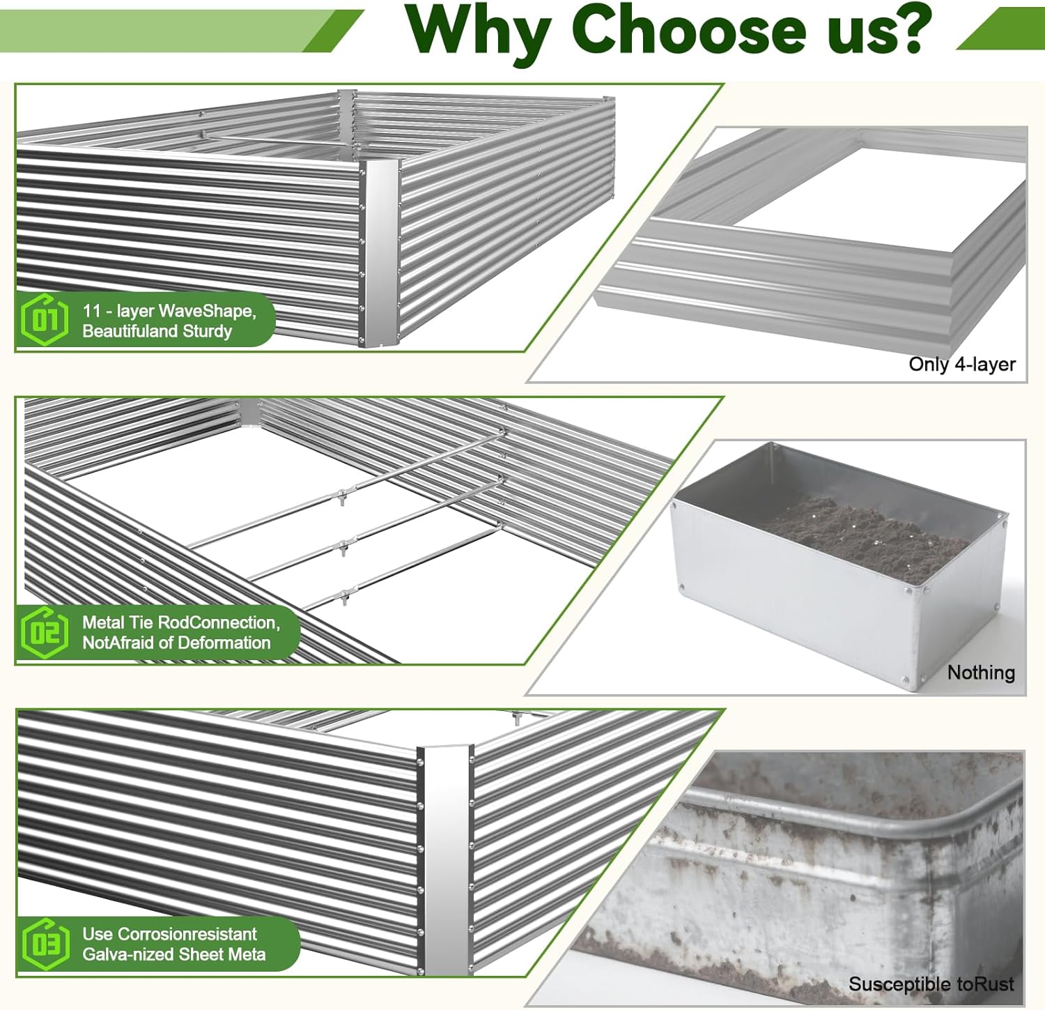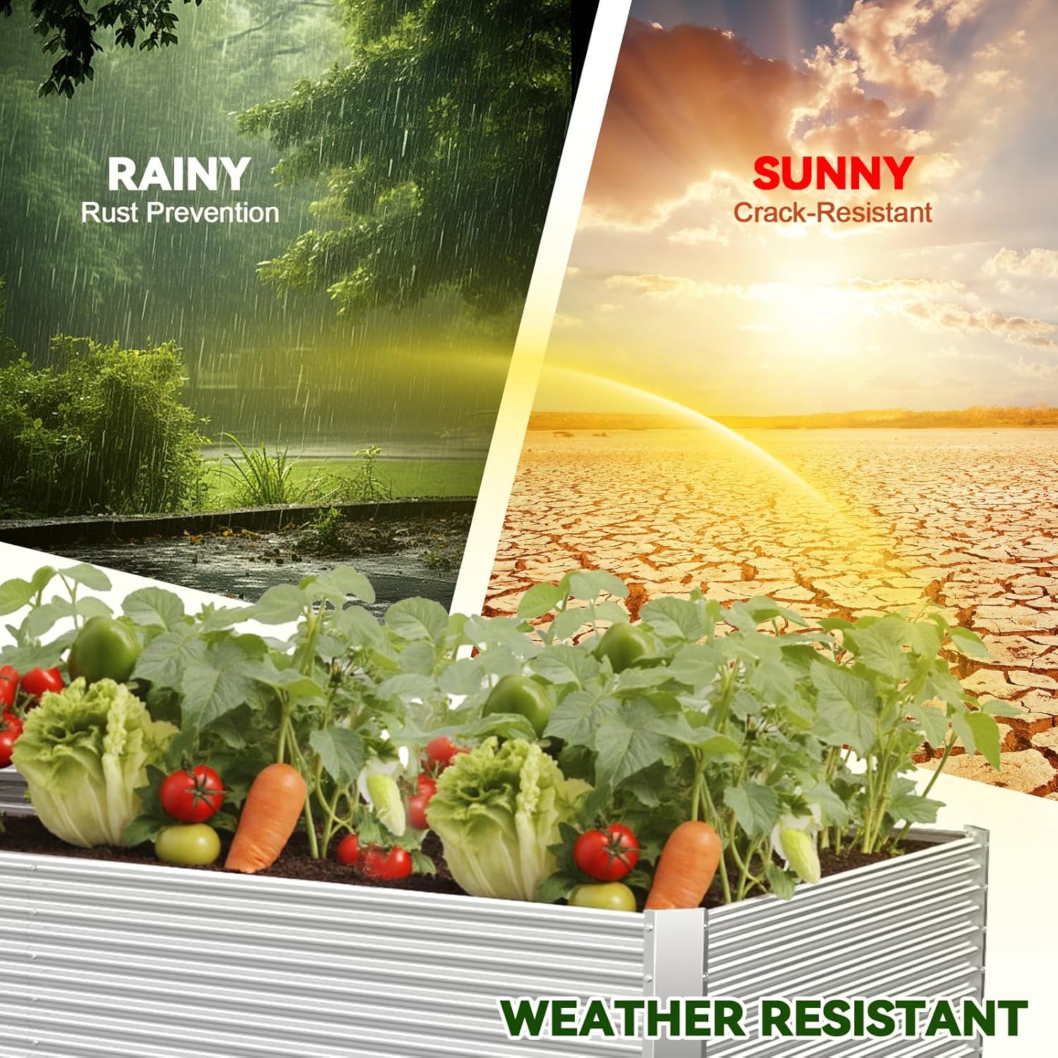 • 【Durable Galvanized Steel Construction】 Crafted from high-quality galvanized steel, this metal raised garden bed is designed for long-lasting use. The anti-corrosion coating ensures durability, while the sturdy frame withstands heavy soil and outdoor weather. Unlike traditional wooden beds, it won’t warp, rot, or crack over time.