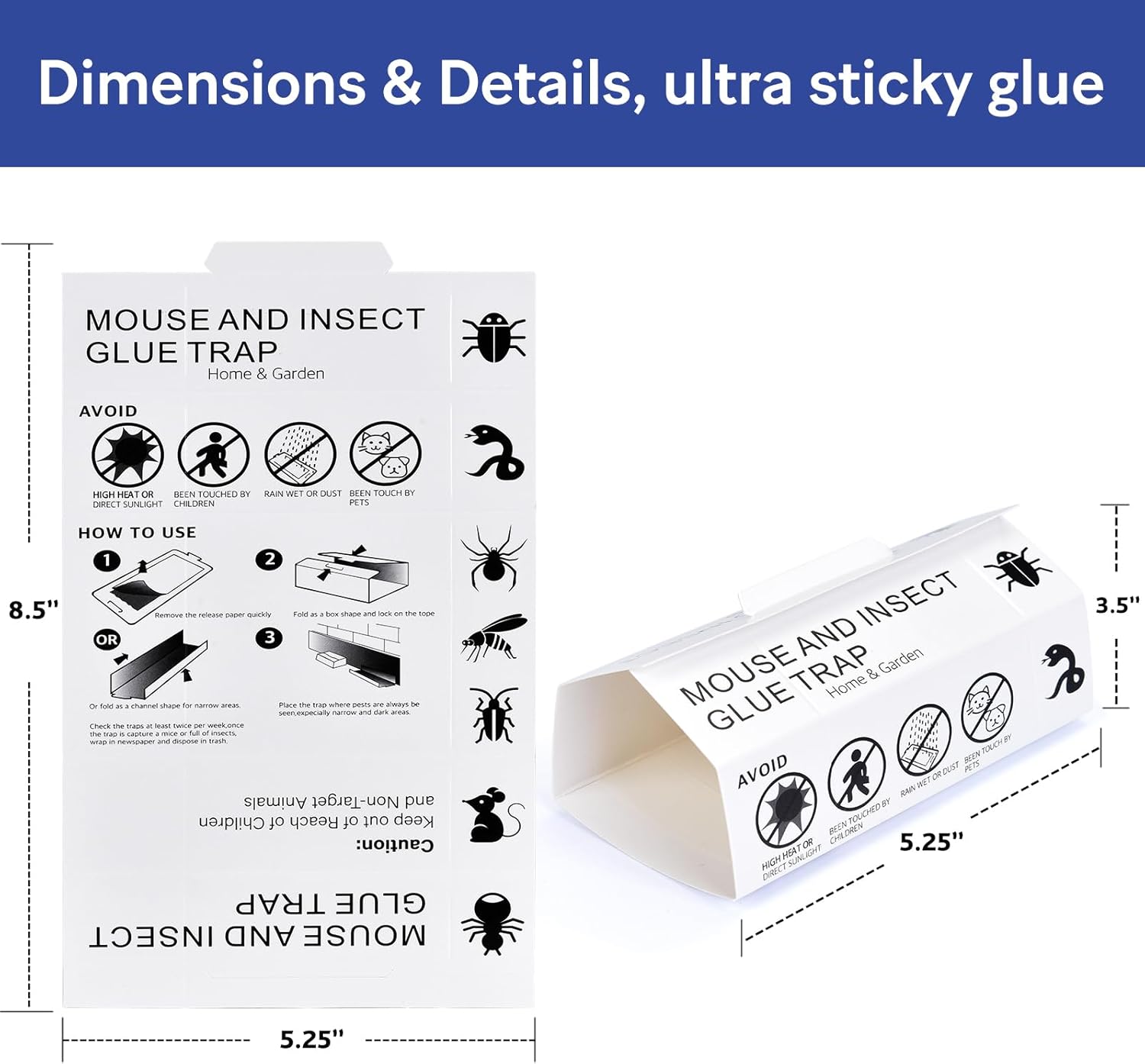 • Effective Pest Control: These pre-baited glue traps are designed to catch mice, cockroach, ants, rats,spiders & other rodent sand other pests quickly efficiently. The strong adhesive ensures pests stay trapped once they step onto the glue board.