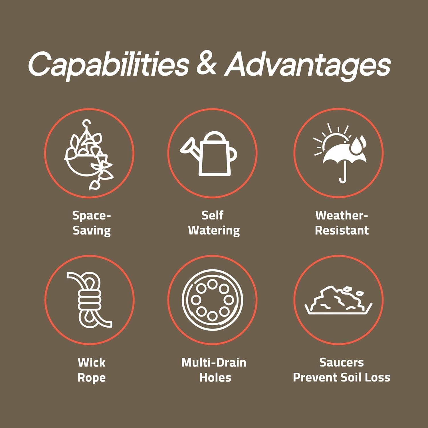 • MULIT-DRAINAGE HOLES – No more soggy soil or root rot. Thoughtfully designed to incorporate multi-hole drainage for a balanced, well-ventilated root environment, these hanging planters ensure excess water drains away while keeping airflow strong.