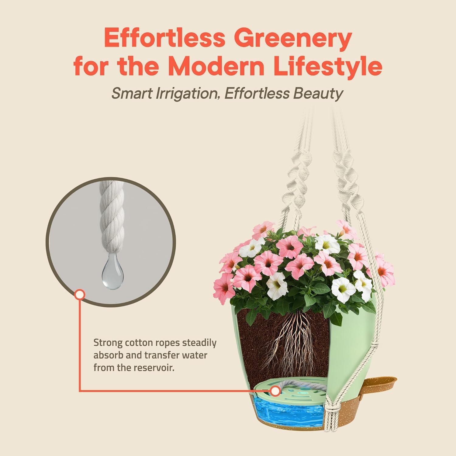 • WORRY-FREE WATERING – These hanging planters for indoor plants feature a built-in deep reservoir & an automatic watering rope system that keep your plants hydrated without daily support. They always get the right moisture—even they sway above the ground.