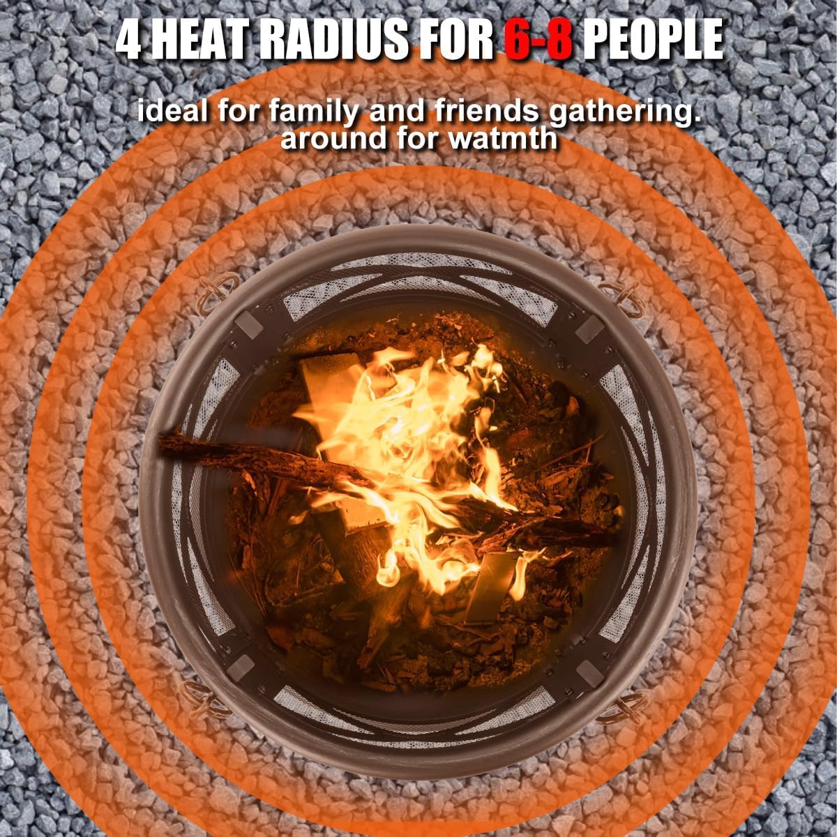Breezz 26 Inch Wood Burning Fire Pit with Cooking Grill and Spark Screen, Outdoor Metal Round Firepit for Patio, Backyard, Bonfire Party, Camping