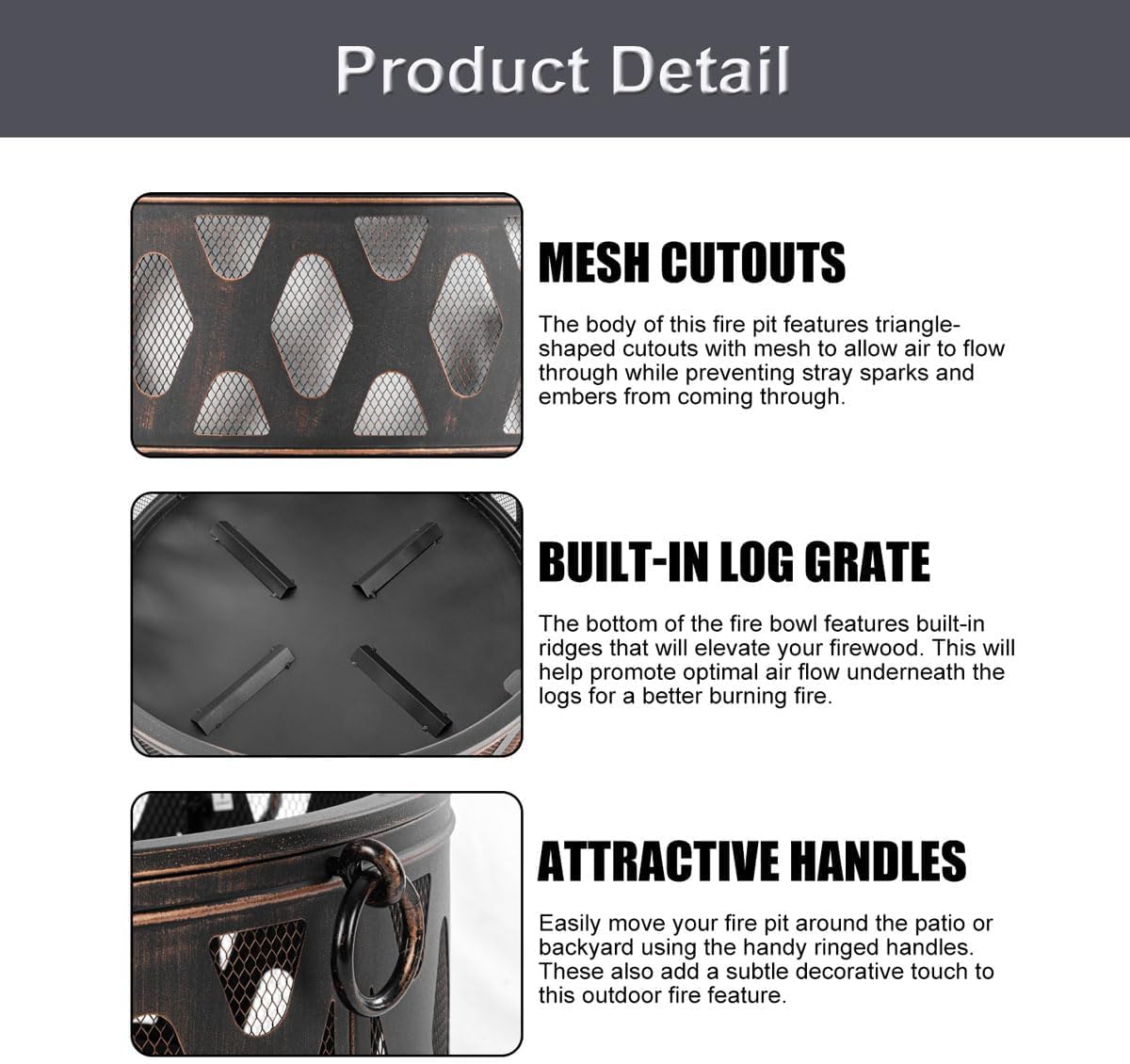 • Includes Spark Screen And Fire Poker For Added Safety And Easy Flame Control