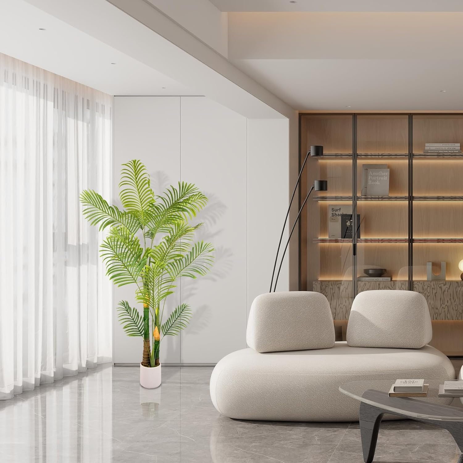 • 🌴 Luxury Artificial Palm Tree with Planter & Free Moss – Elevate your home decor instantly! MCTYBB’s artificial palm tree arrives pre-potted in a sleek white planter, comes with free faux moss—no extra purchases needed. Perfect for patio decor, poolside lounging, or adding tropical vibes to room decor in living rooms, offices, or bedrooms.